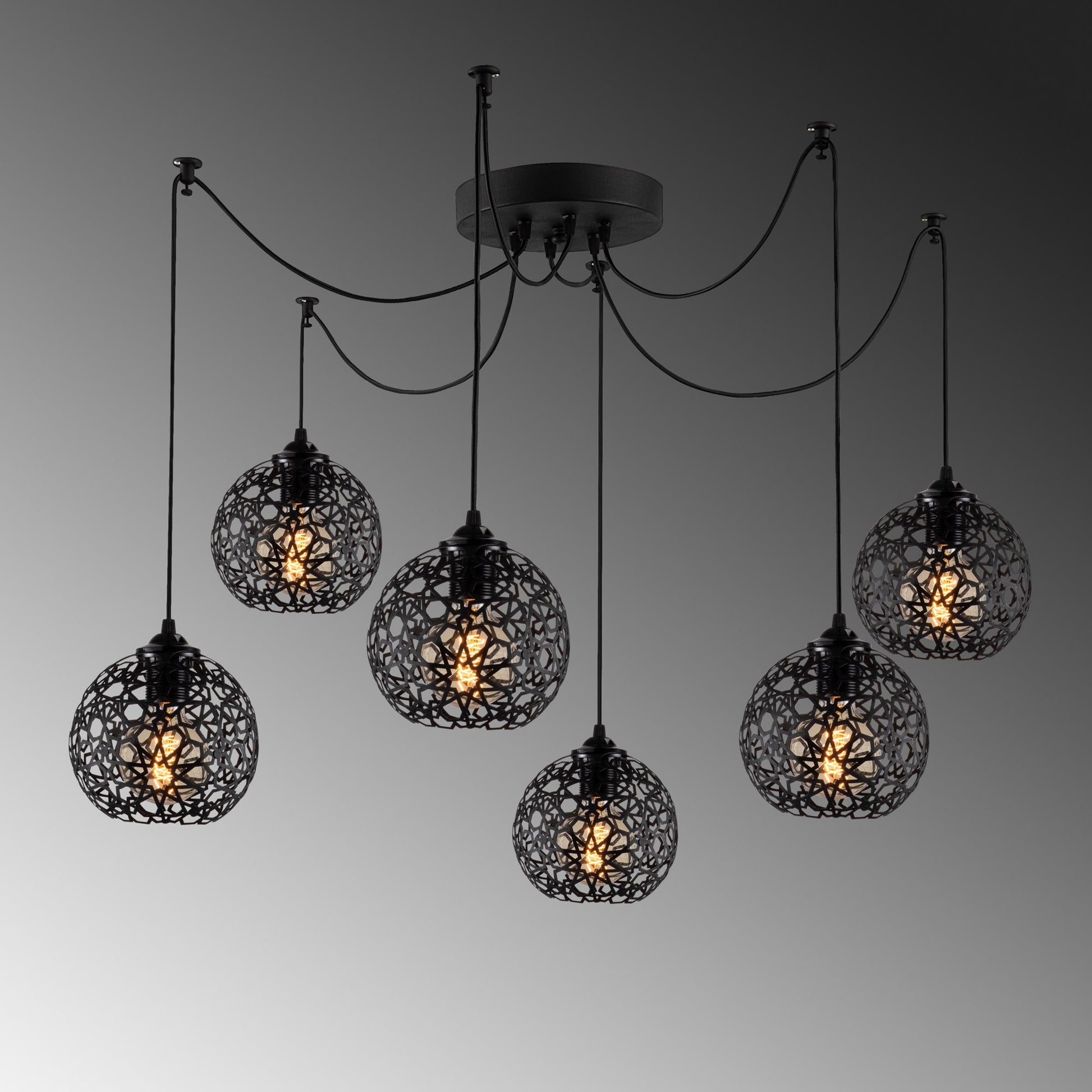 Candeeiro de Teto Preto Moderno, 137 x 137 cm, Altura Ajustável, Corpo em Metal, 6 Soquetes E27, IP20 | Iluminação Elegante para Decoração Escandinava e do Sudoeste
