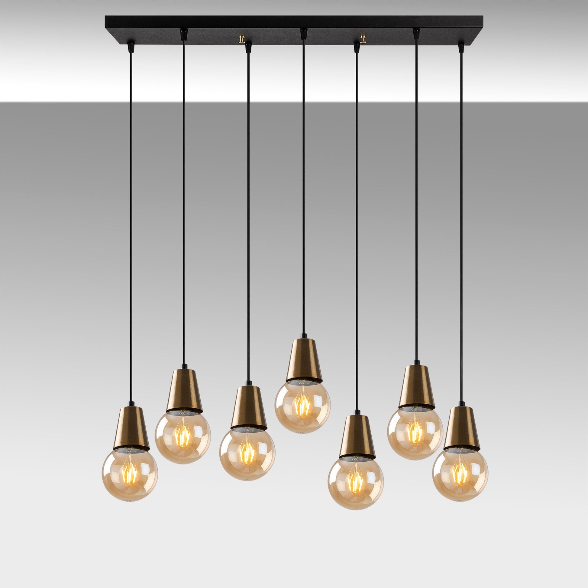 Com a sua caraterística de altura ajustável, tem a liberdade de personalizar a iluminação de acordo com as suas preferências. Quer pretenda criar um ambiente acolhedor e íntimo ou iluminar toda a divisão, este candeeiro tem tudo o que precisa. Os seus sete casquilhos e27 permitem um máximo de lâmpadas de 40 watts, proporcionando um brilho amplo para iluminar o seu espaço.