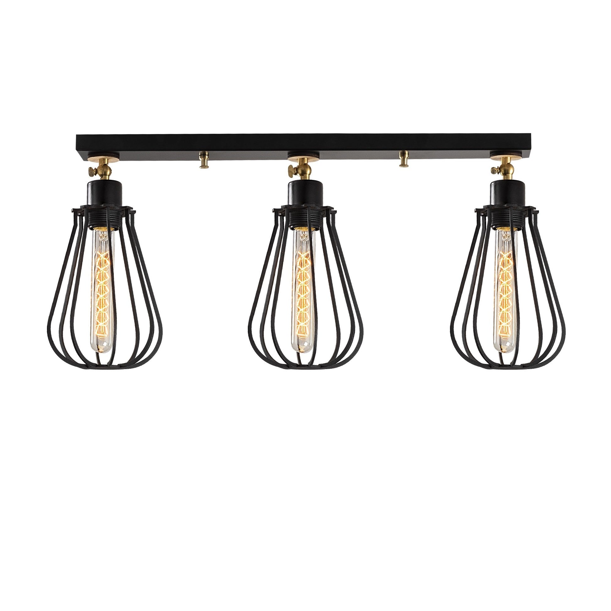 Candeeiro de Teto Industrial Preto, Corpo em Metal, 66 cm de Diâmetro, 29 cm de Altura | 3 x E27 Máx. 40 W | Design Elegante para Espaços Modernos, Classificação IP20, Cabo de 90 cm