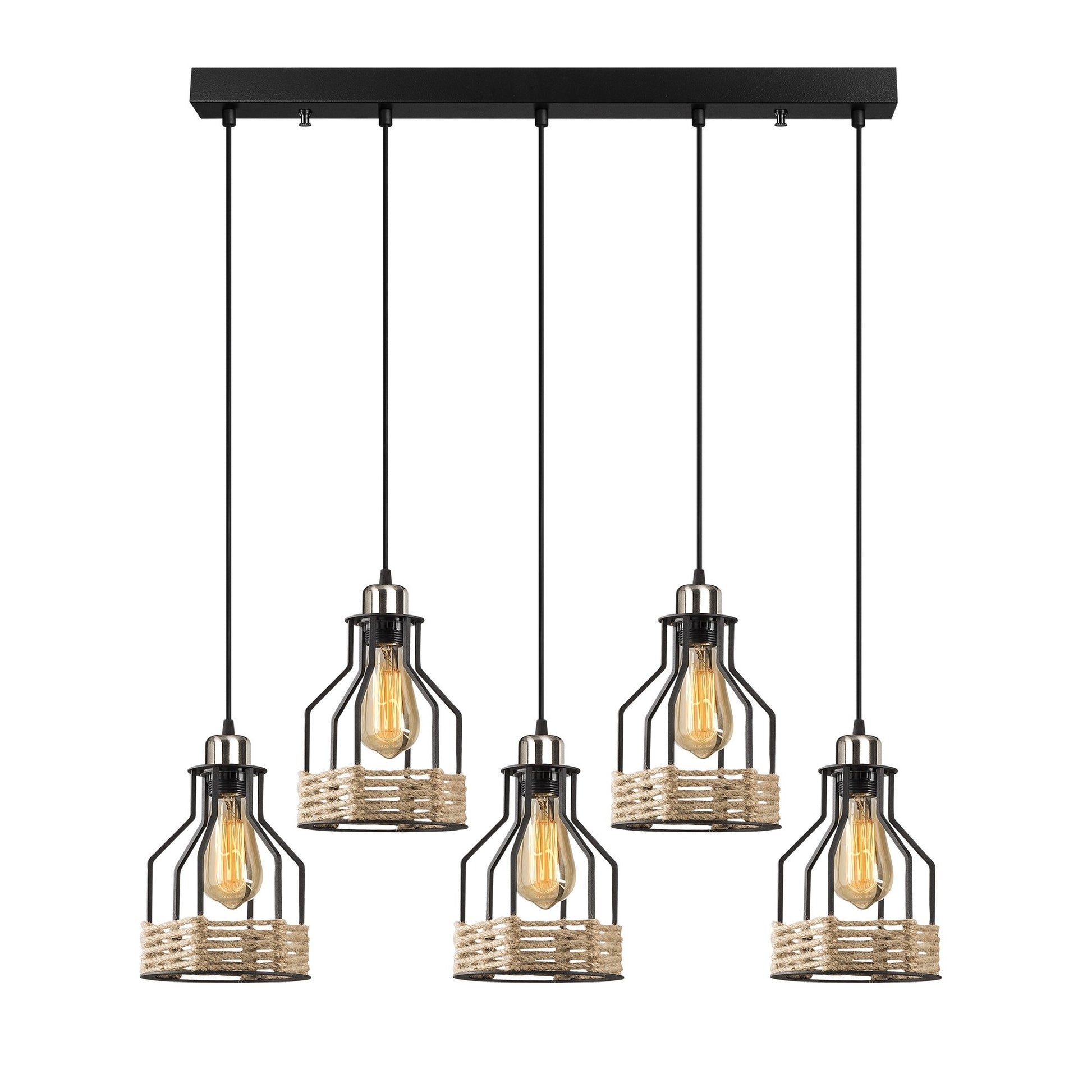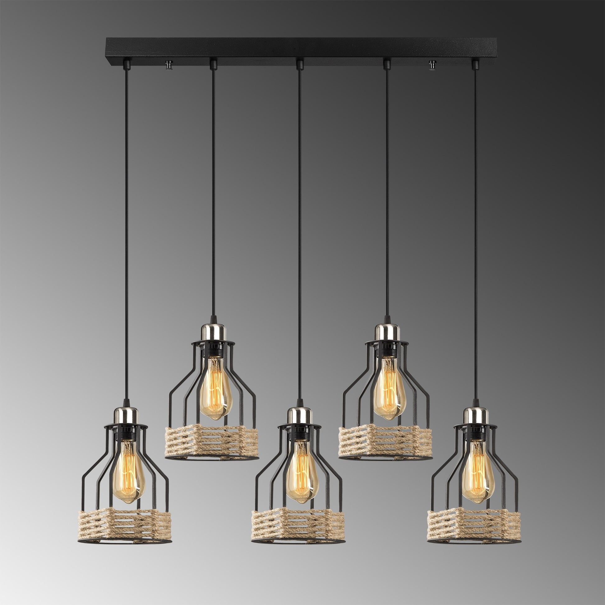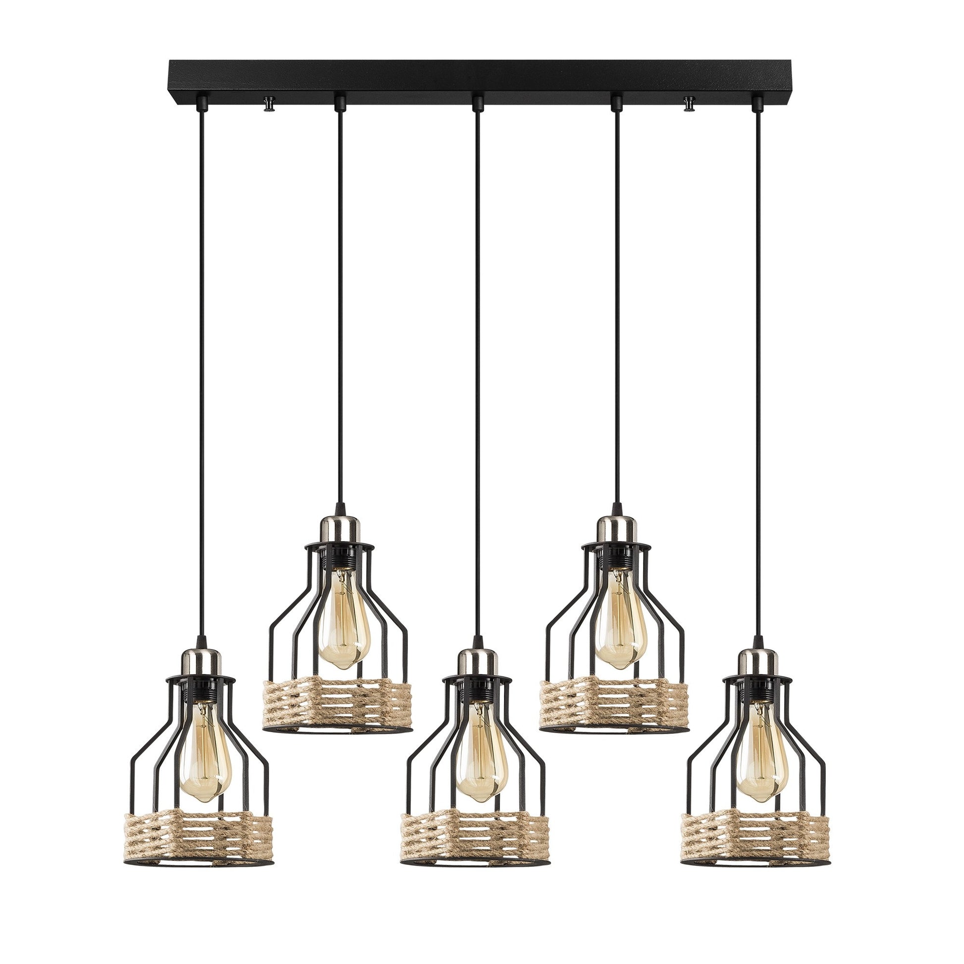 Candeeiro de Teto Industrial Preto, 87 x 17 cm, Altura Ajustável 117 cm | Corpo de Metal, 5 Soquetes E27, Design Nostálgico de Cabana/Chalé | Perfeito para Espaços Modernos