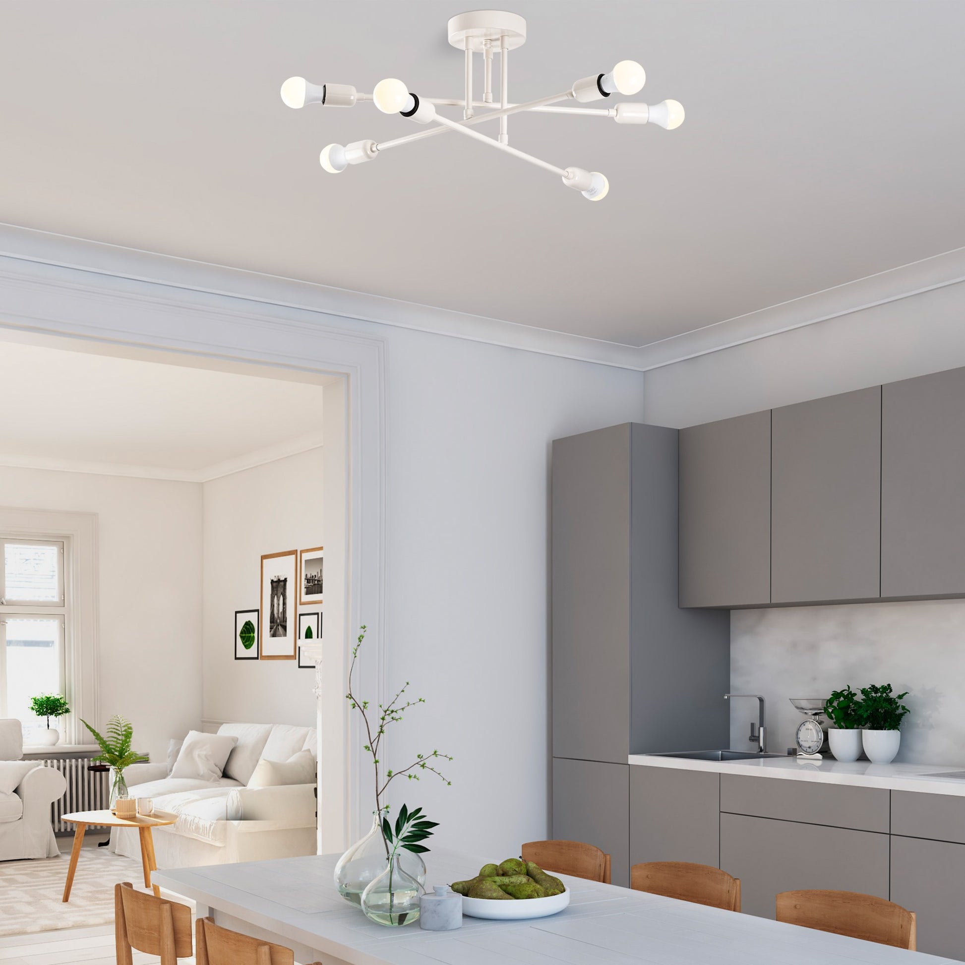 Candeeiro de Teto Elegante em Creme, Corpo em Ferro, 64 x 64 cm, Altura 30 cm, E27 Máx. 40 W, Inclui Instruções de Instalação | Iluminação Elegante para Espaços Modernos
