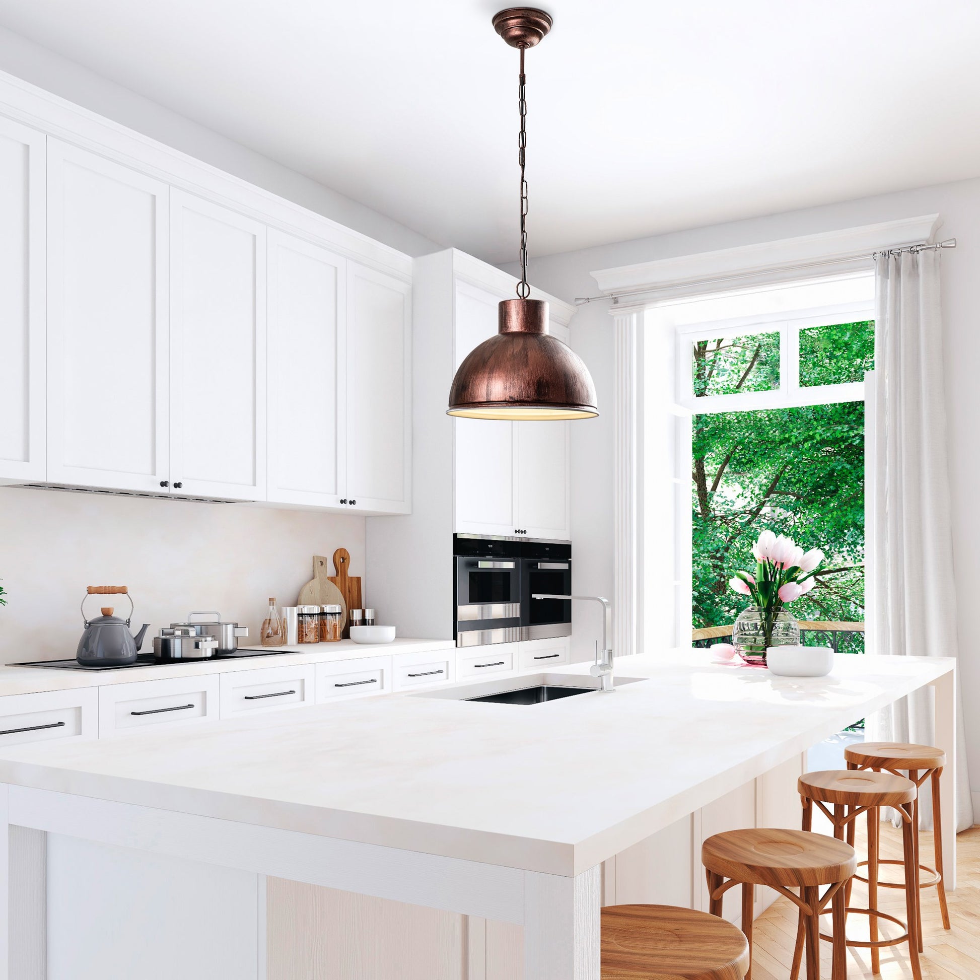 Candeeiro de Teto Elegante de Cobre, Altura Ajustável 128 cm, Diâmetro 32 cm | Corpo de Ferro, Soquete E27, Potência Máxima 40 W | Iluminação Elegante para Espaços Modernos, Classificação IP20