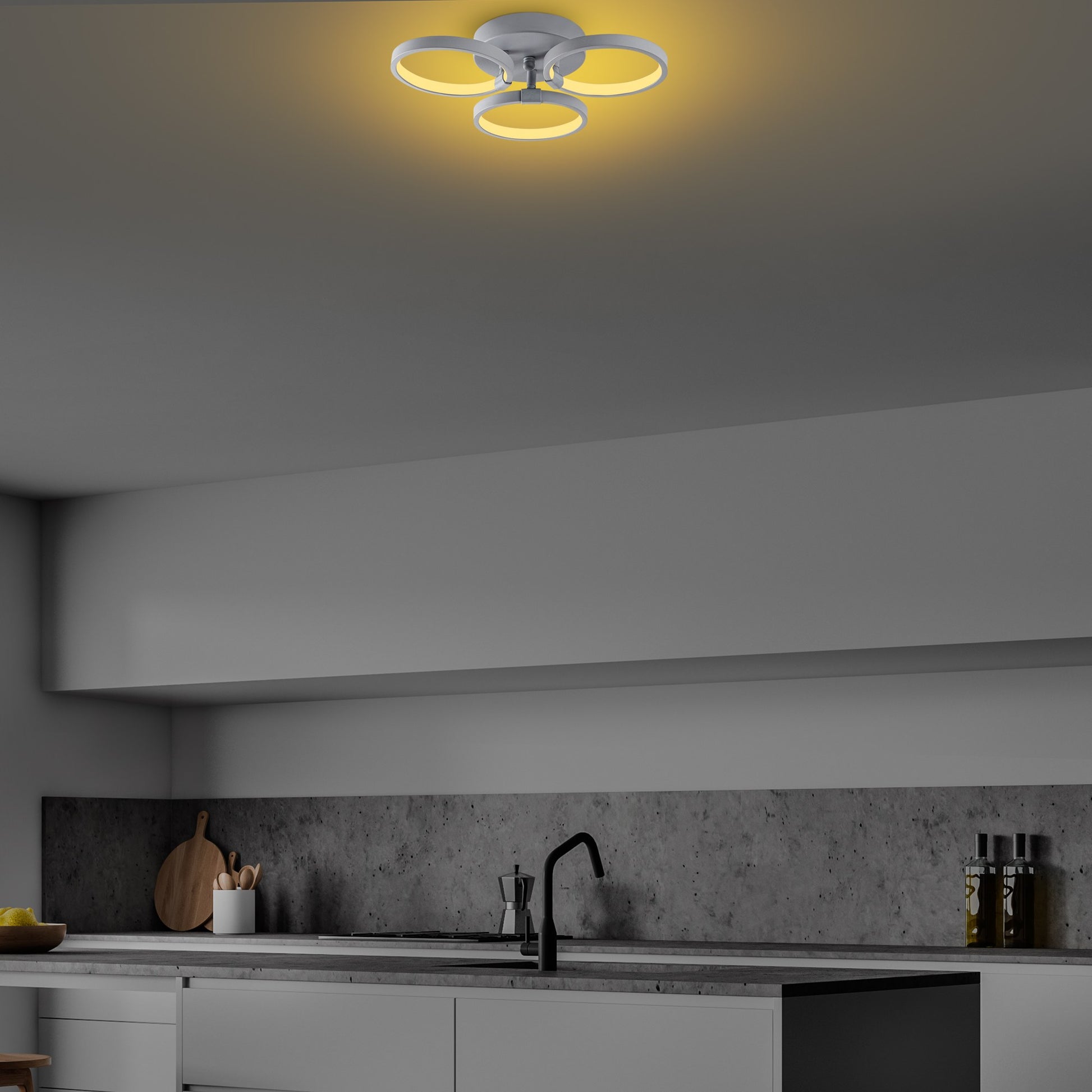 Candeeiro de Teto Nardo Cinza, Corpo em Metal, 37x32x9 cm | LED 18W 3000K, IP20 | Iluminação Elegante para Casas Modernas, Design Elegante e Construção Durável