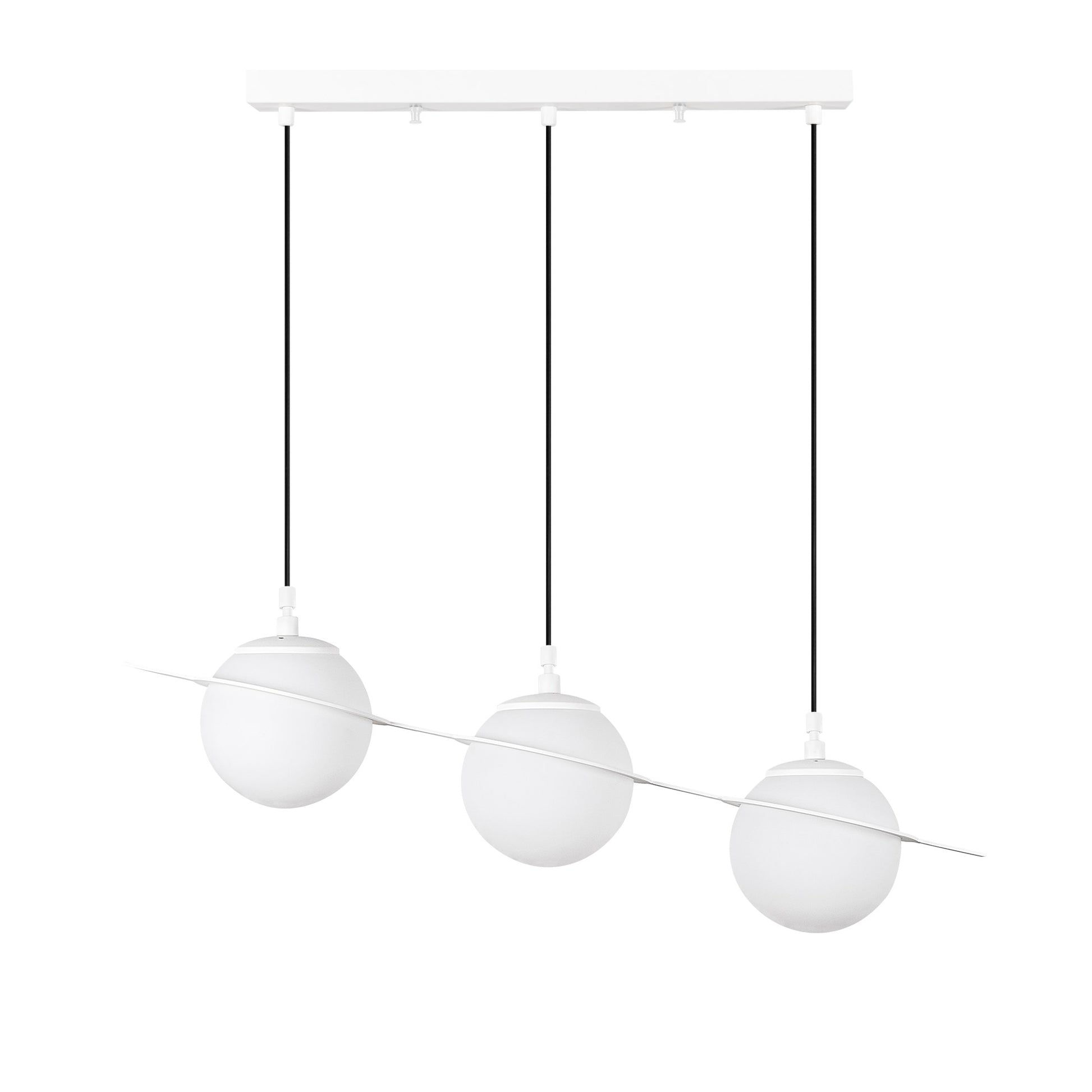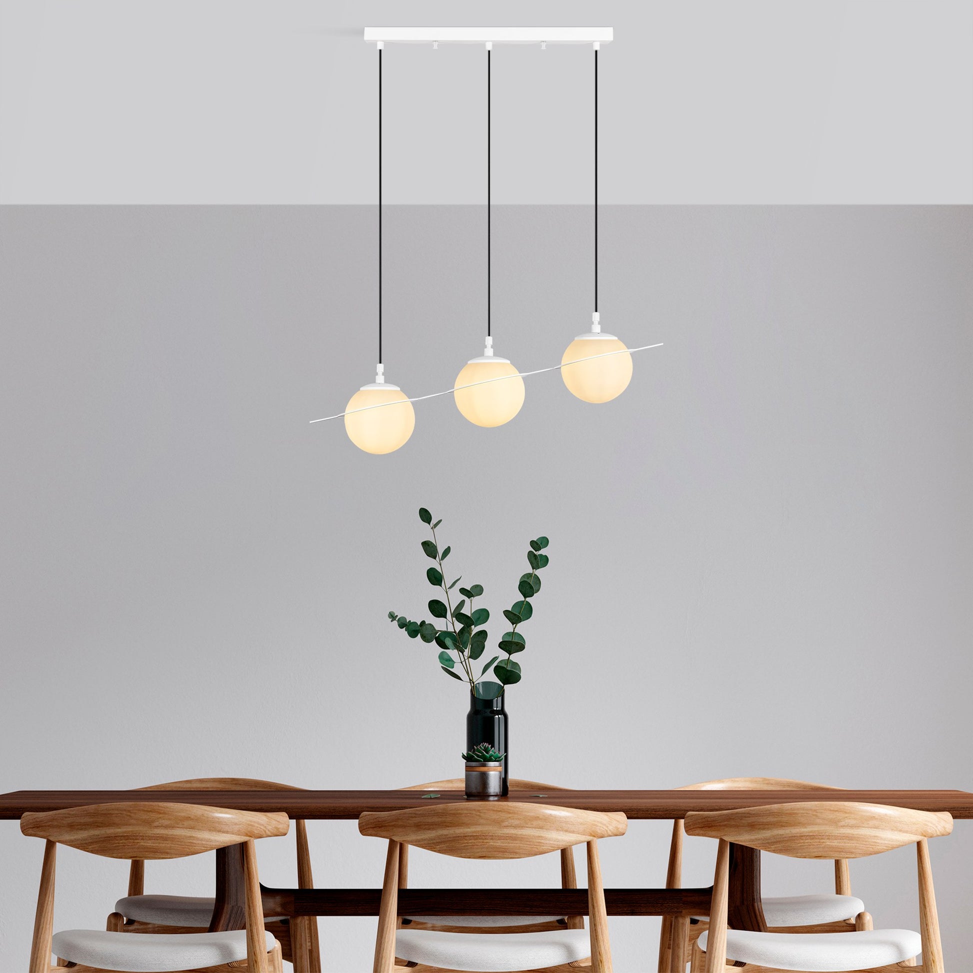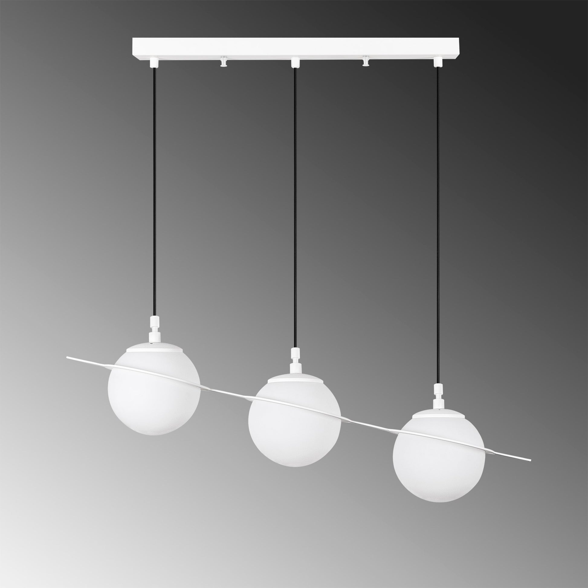 Candeeiro de Teto Branco Elegante, Corpo em Metal, 76 cm de Largura, Altura Ajustável (22-167 cm), 3 Tomadas E14, IP20 | Perfeito para Salas de Estar e Salas de Jantar Modernas
