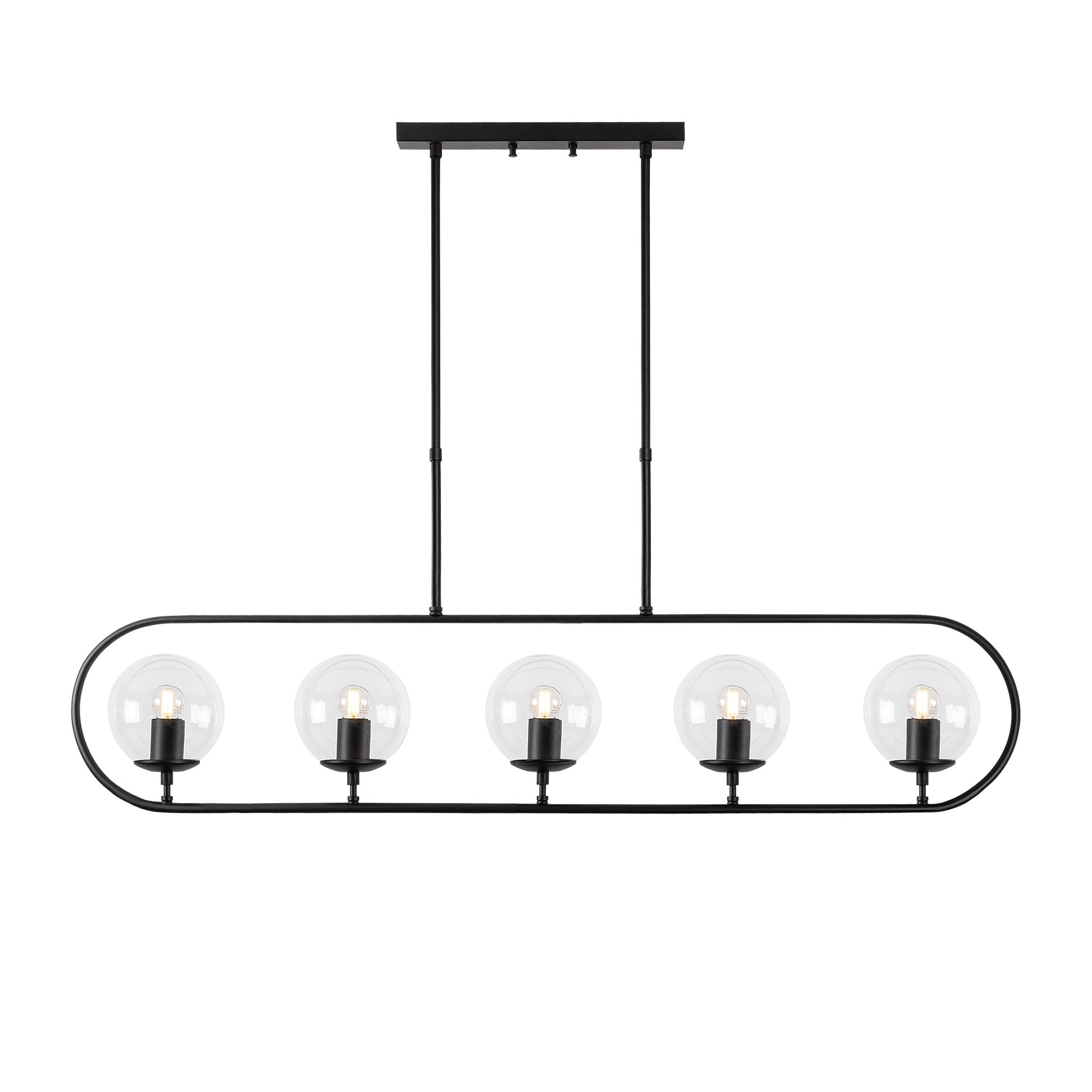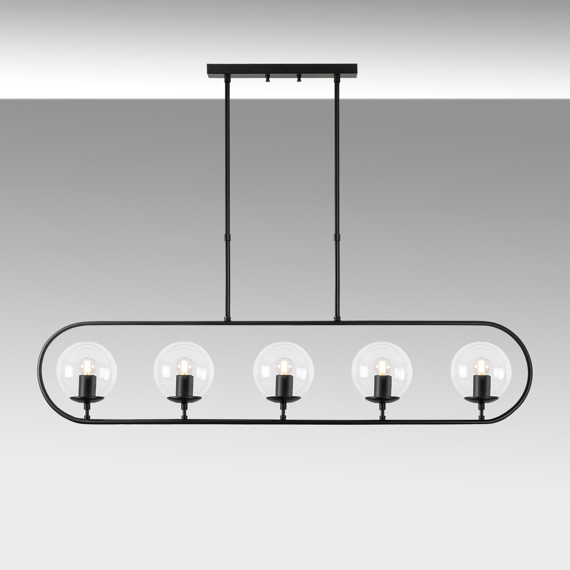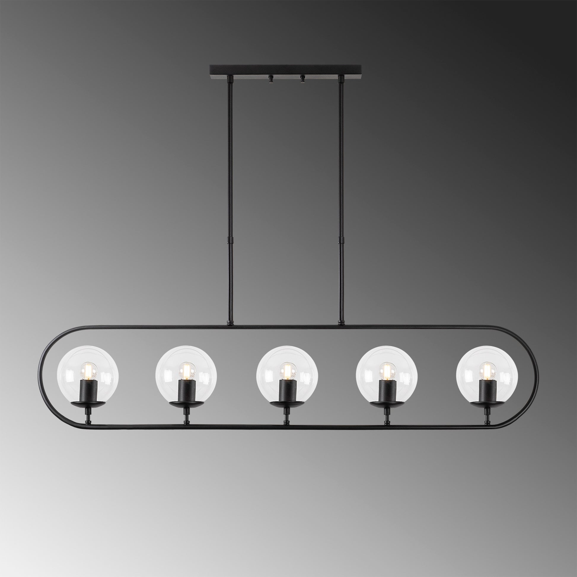 Candeeiro de Teto preto moderno, corpo de metal e tampa de vidro, 122 x 15 cm, altura ajustável de 49 a 91 cm, 5 soquetes E14, design industrial e escandinavo elegante