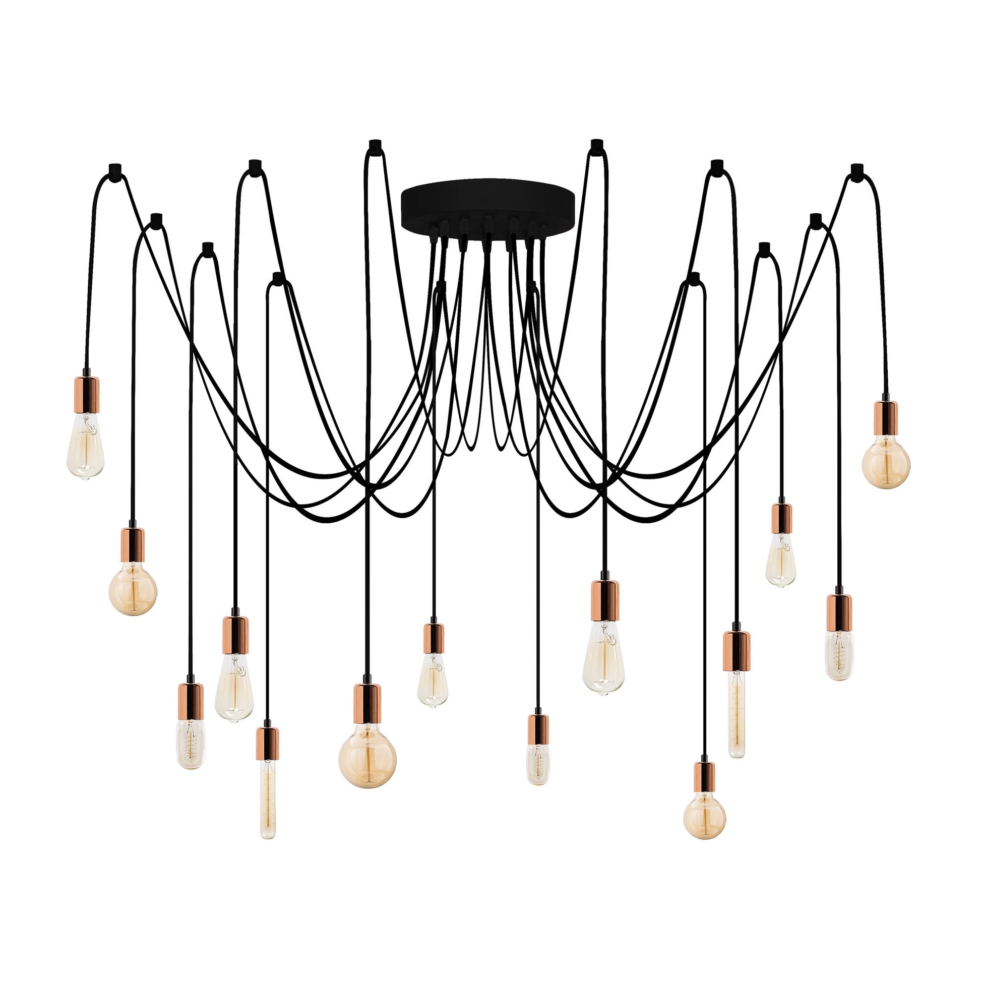 Candeeiro de Teto moderno de cobre, altura ajustável de 102 cm, 216 x 216 cm | Corpo de metal, 14 x E27 máx. 40 W | Iluminação elegante para residências e escritórios