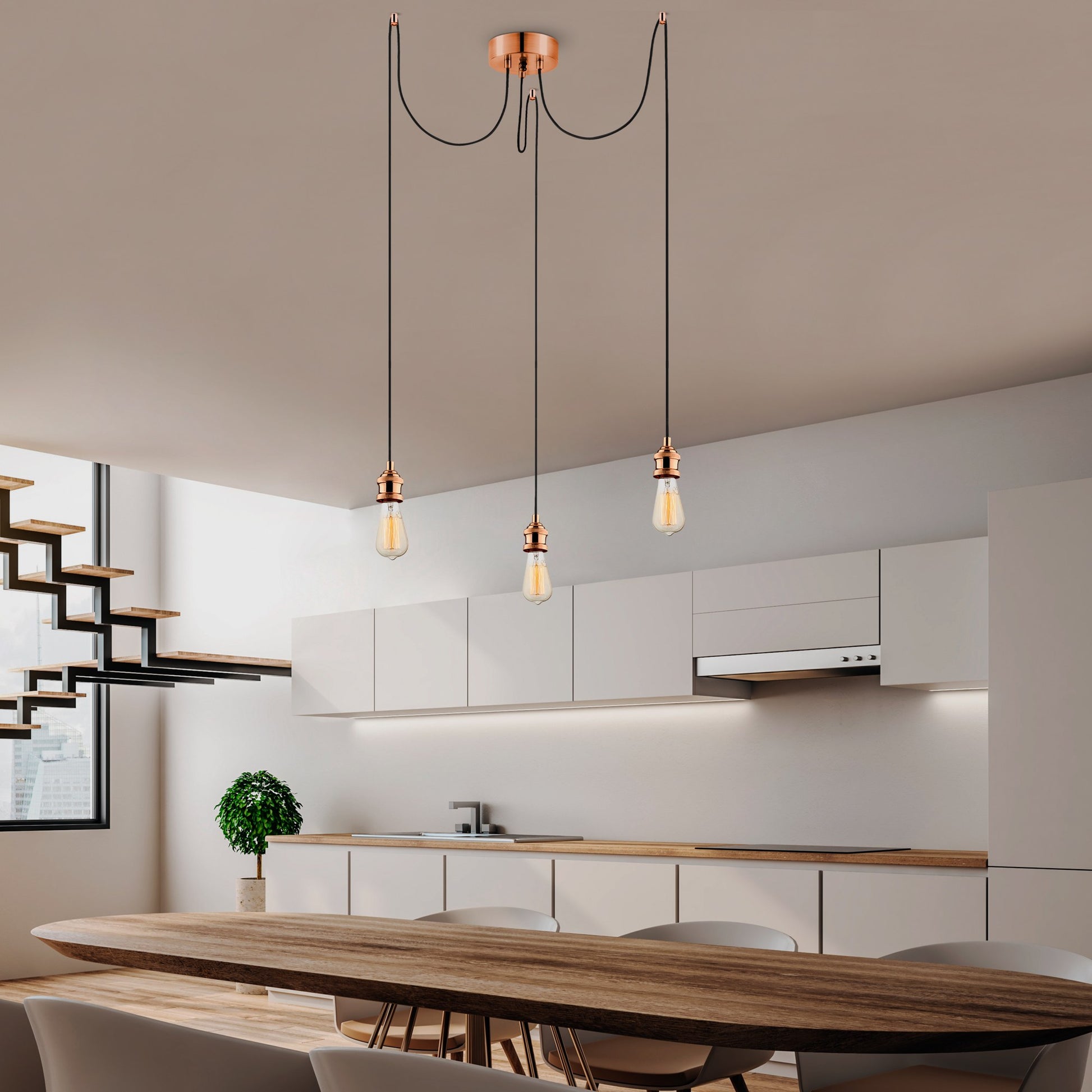 Candeeiro de Teto – 102 cm – Cobre – Metal