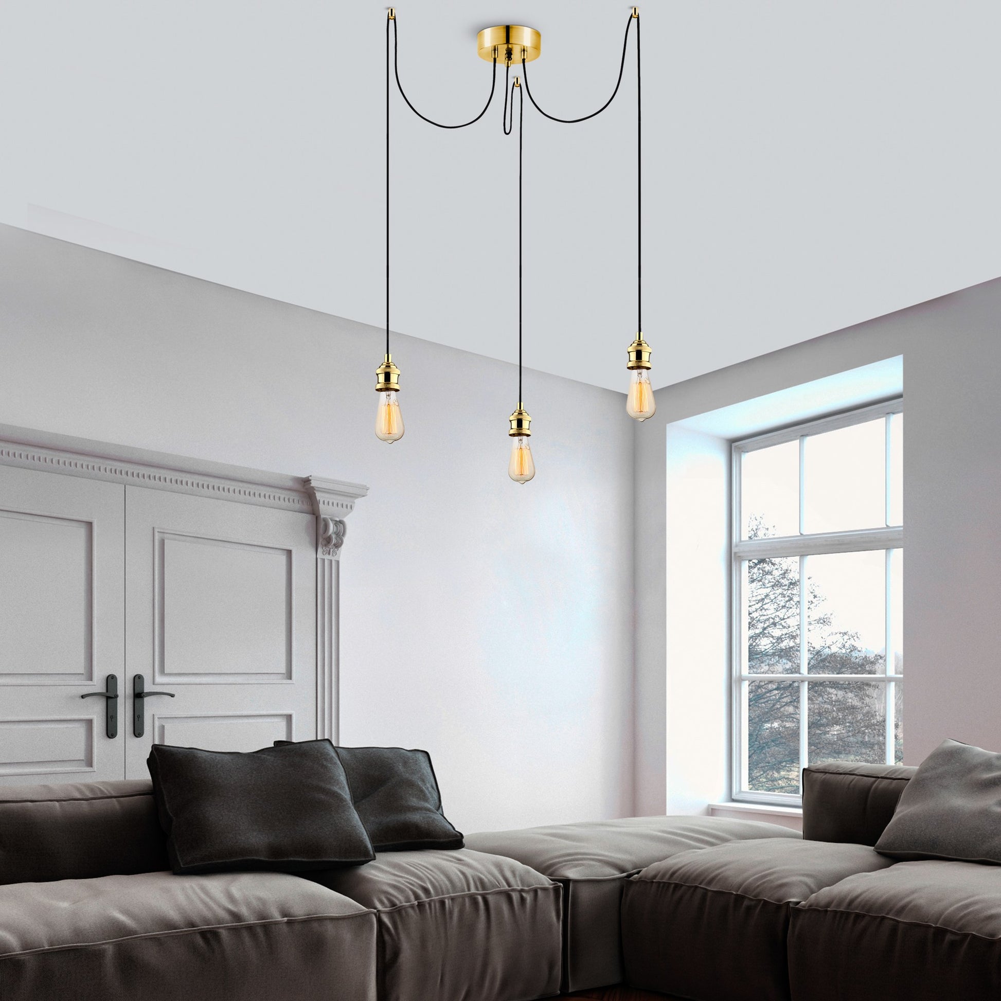 Candeeiro de Teto Dourado Elegante, Altura Ajustável 102 cm, Corpo em Ferro, 96 x 6 cm | 3 x E27 Máx. 40 W | Design Glamouroso e Nostálgico para Espaços Modernos, Classificação IP20