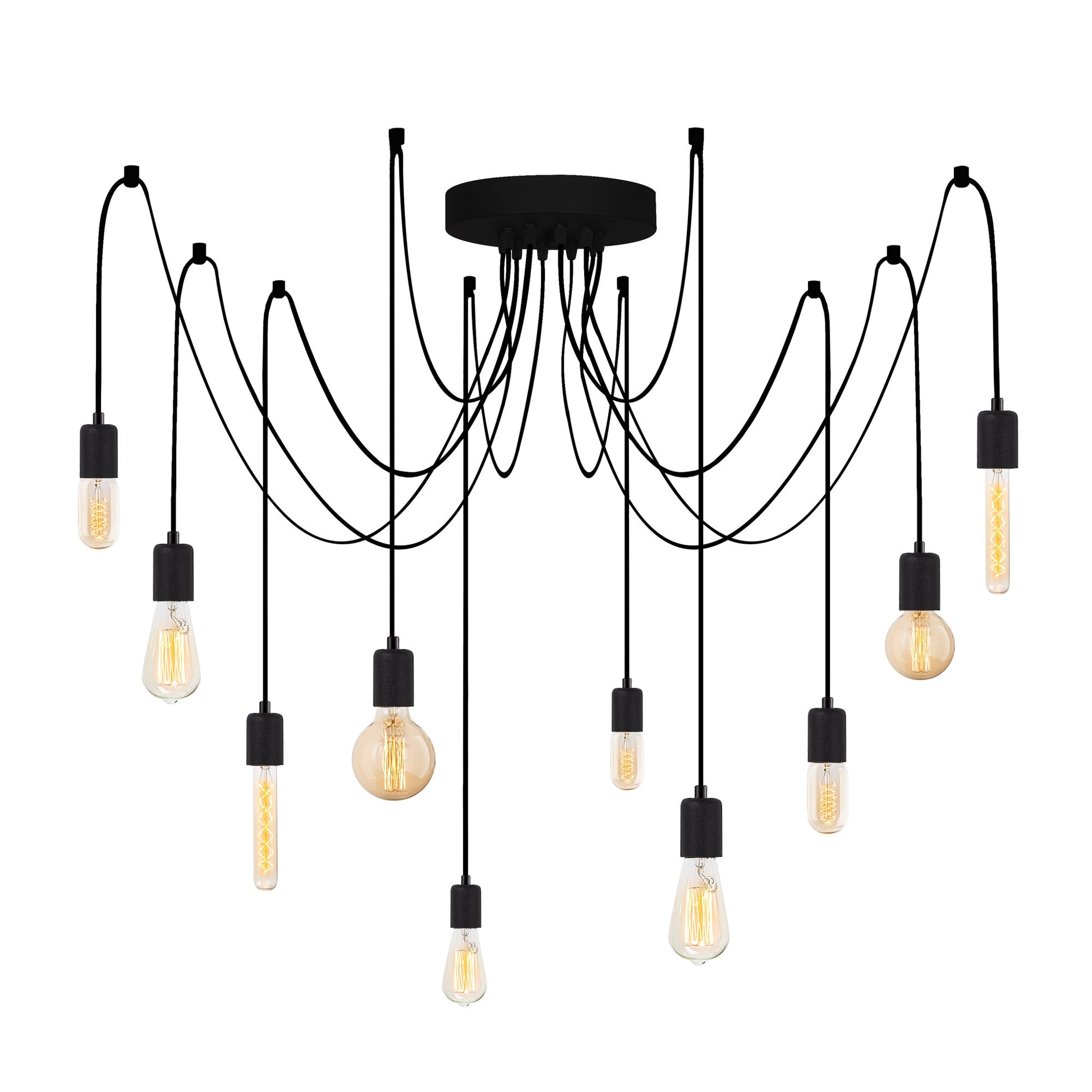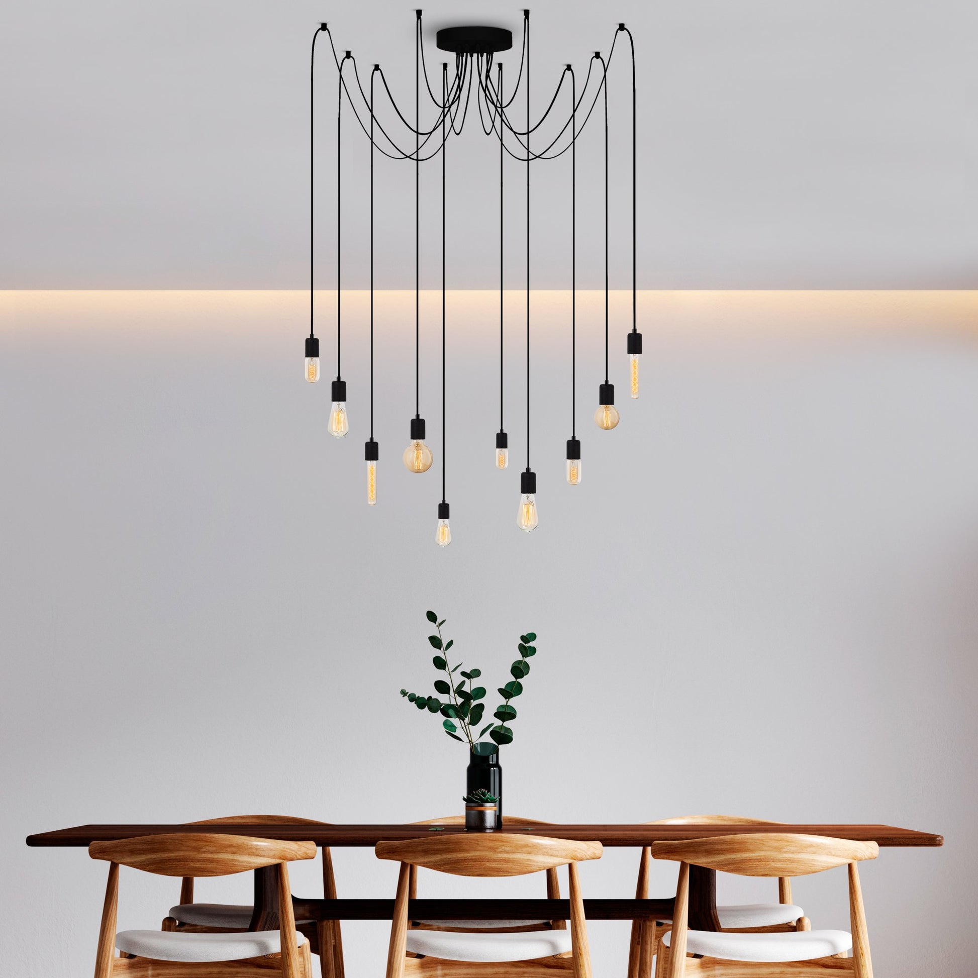 Candeeiro de Teto Industrial Preto, 186 x 186 cm, Altura Ajustável, 10 x E27, Máx. 40 W | Corpo de Ferro Resistente, Design Moderno para Decoração Elegante