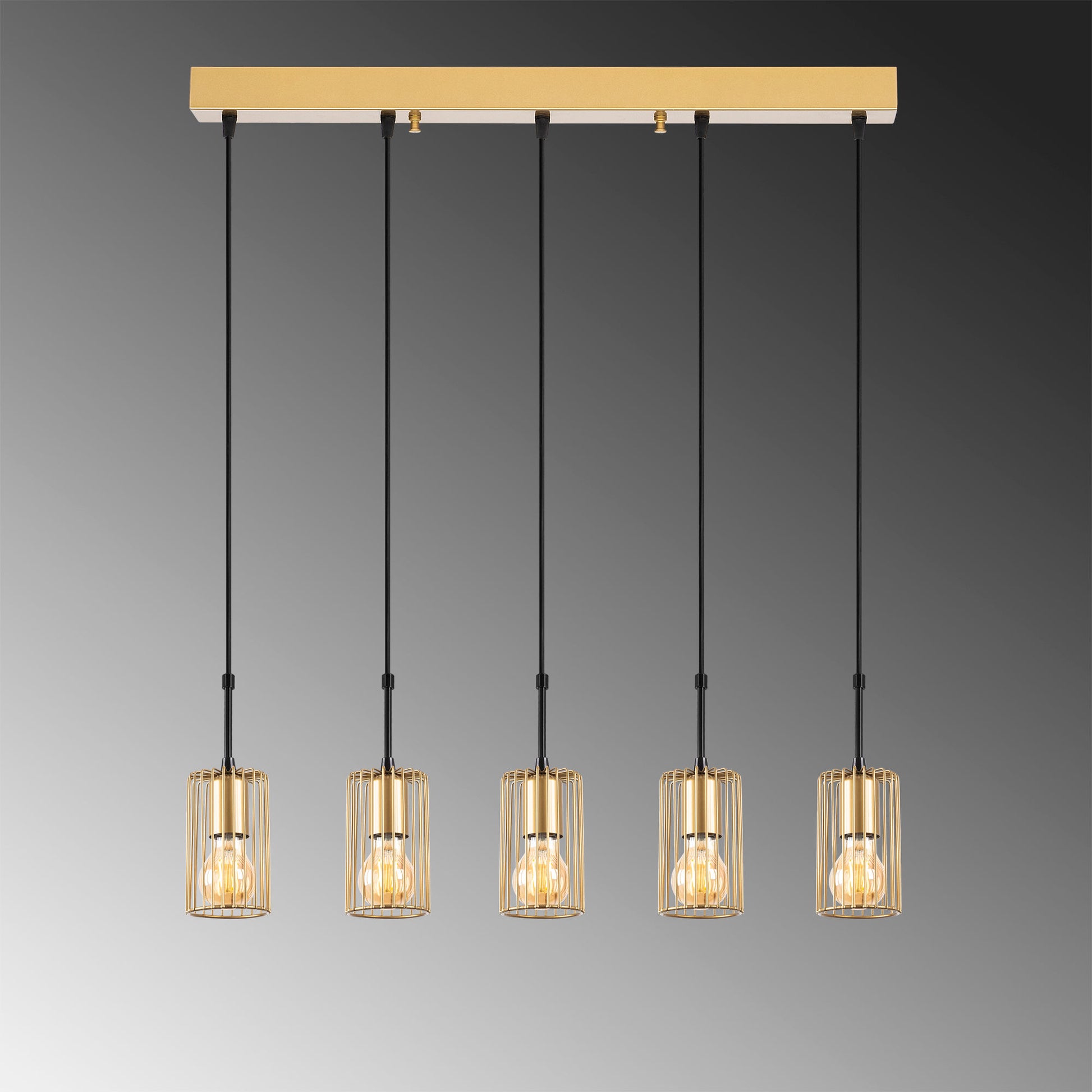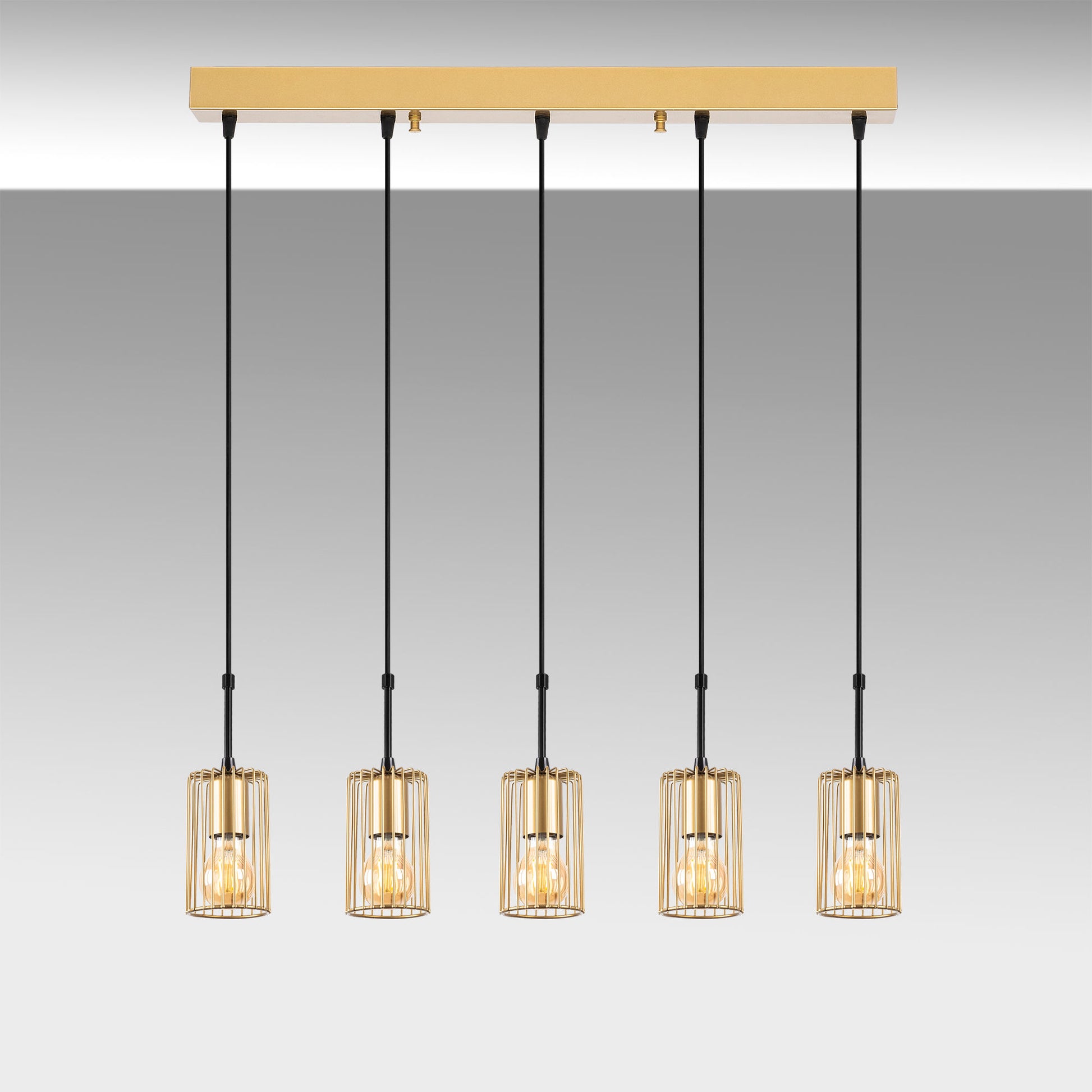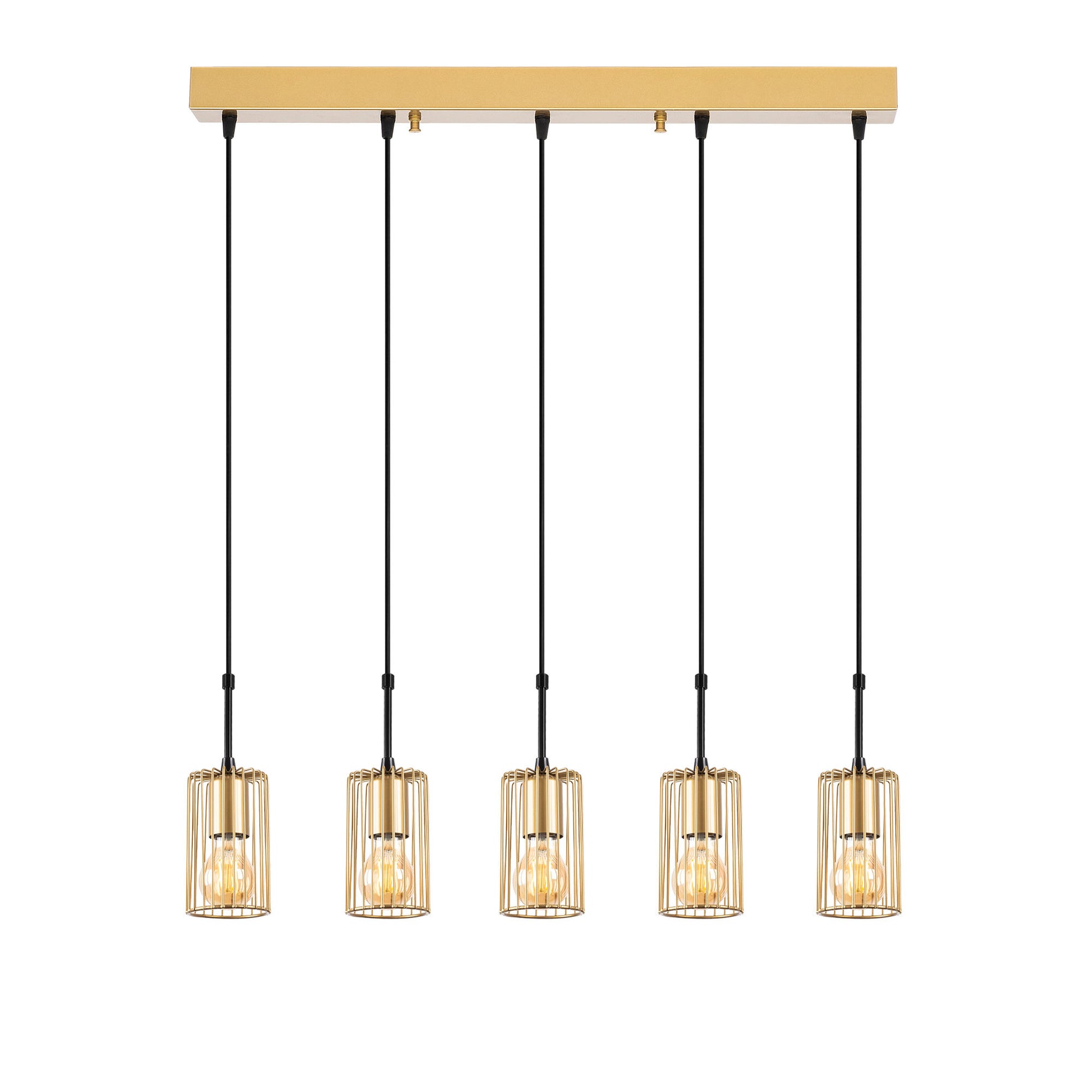Candeeiro de Teto Dourado Elegante, Corpo em Metal, 80 x 9 x 121 cm | Altura Ajustável, 5 Soquetes E27, Design Moderno para Decoração Elegante | Classificação IP20