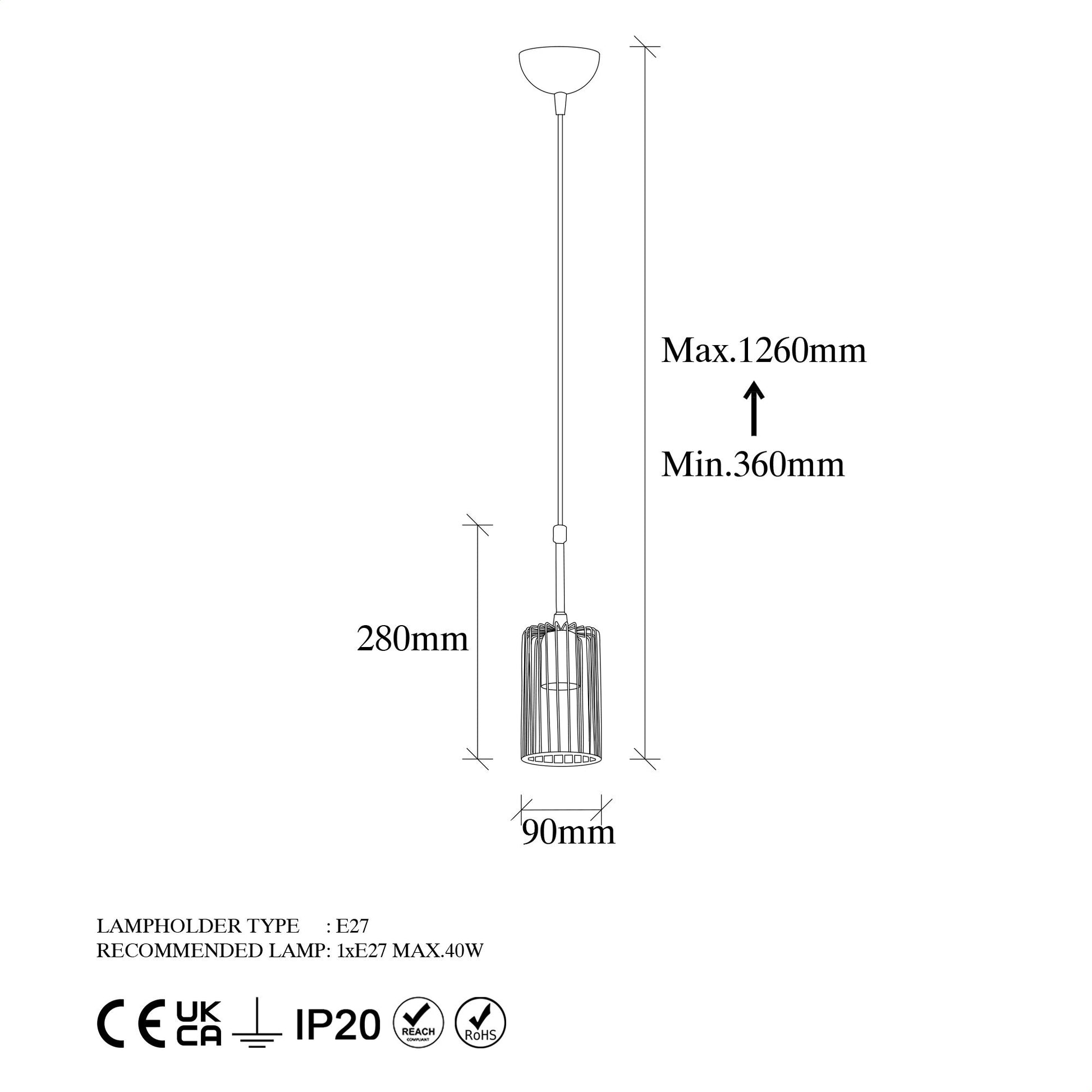 Candeeiro de Teto Dourado Elegante, Corpo em Metal, Altura Ajustável, 9 x 9 x 126 cm | Soquete E27, Potência Máxima de 40 W, Design Moderno e Glamouroso para Iluminação Residencial e de Escritório