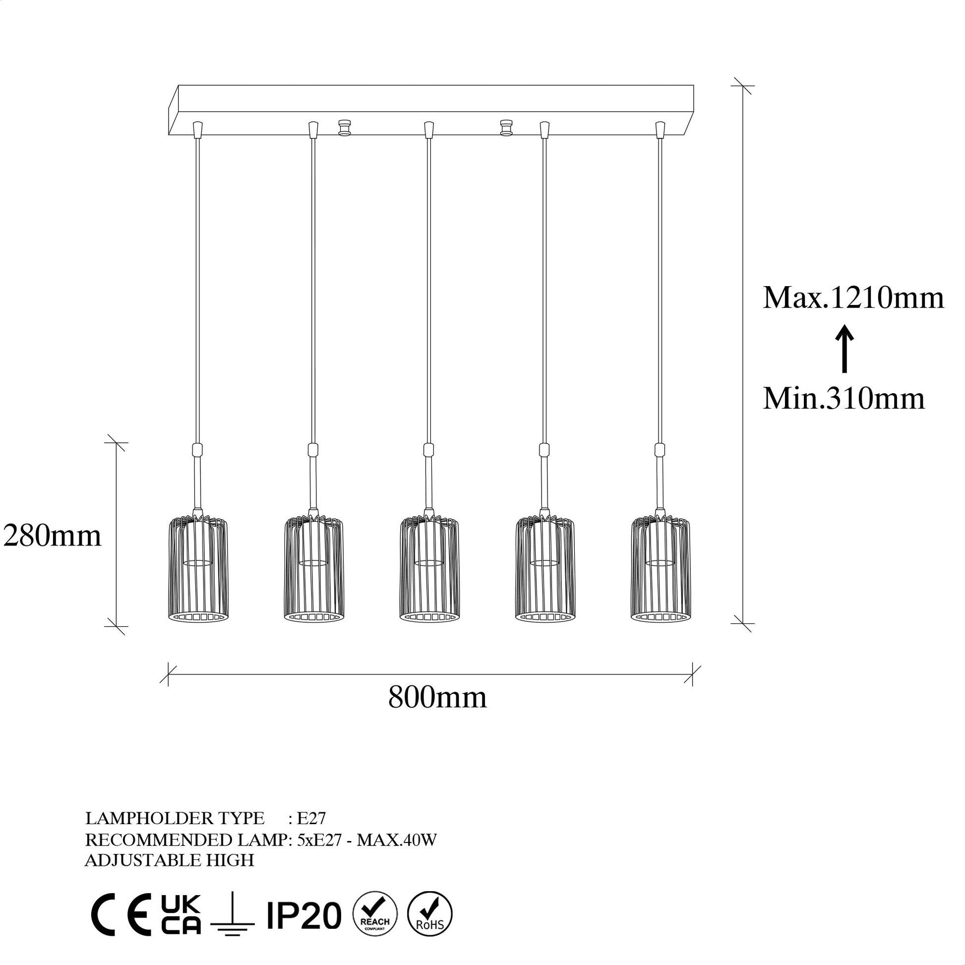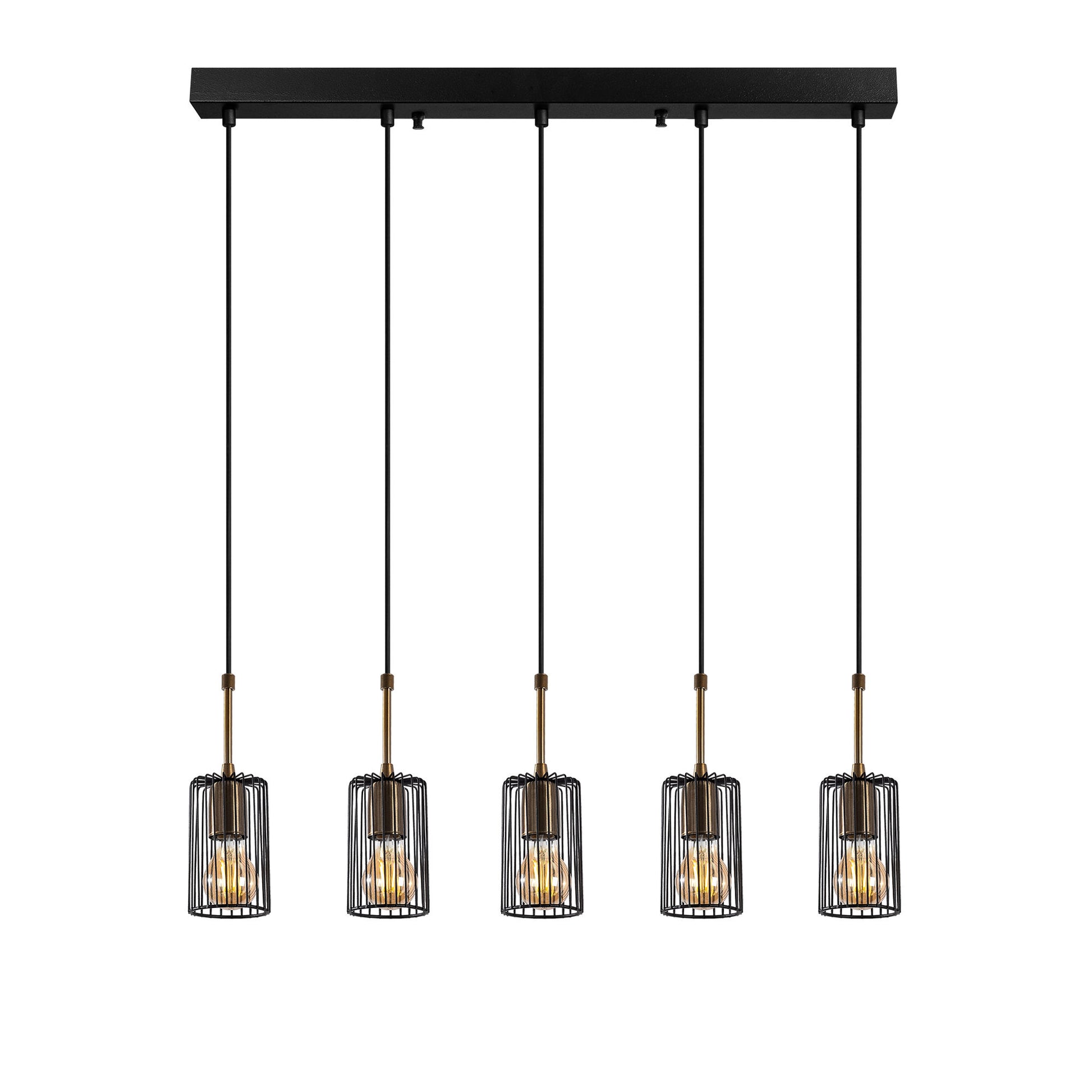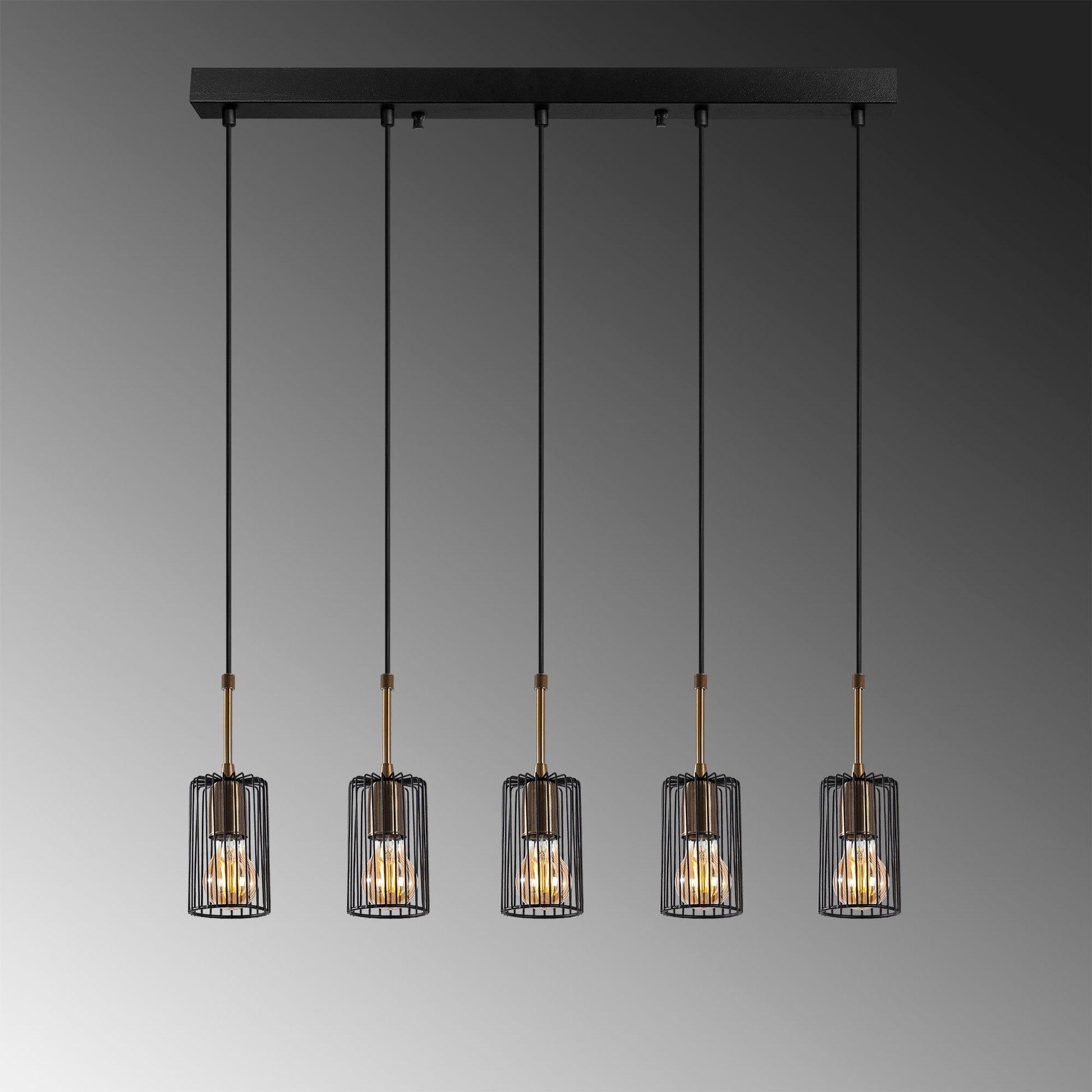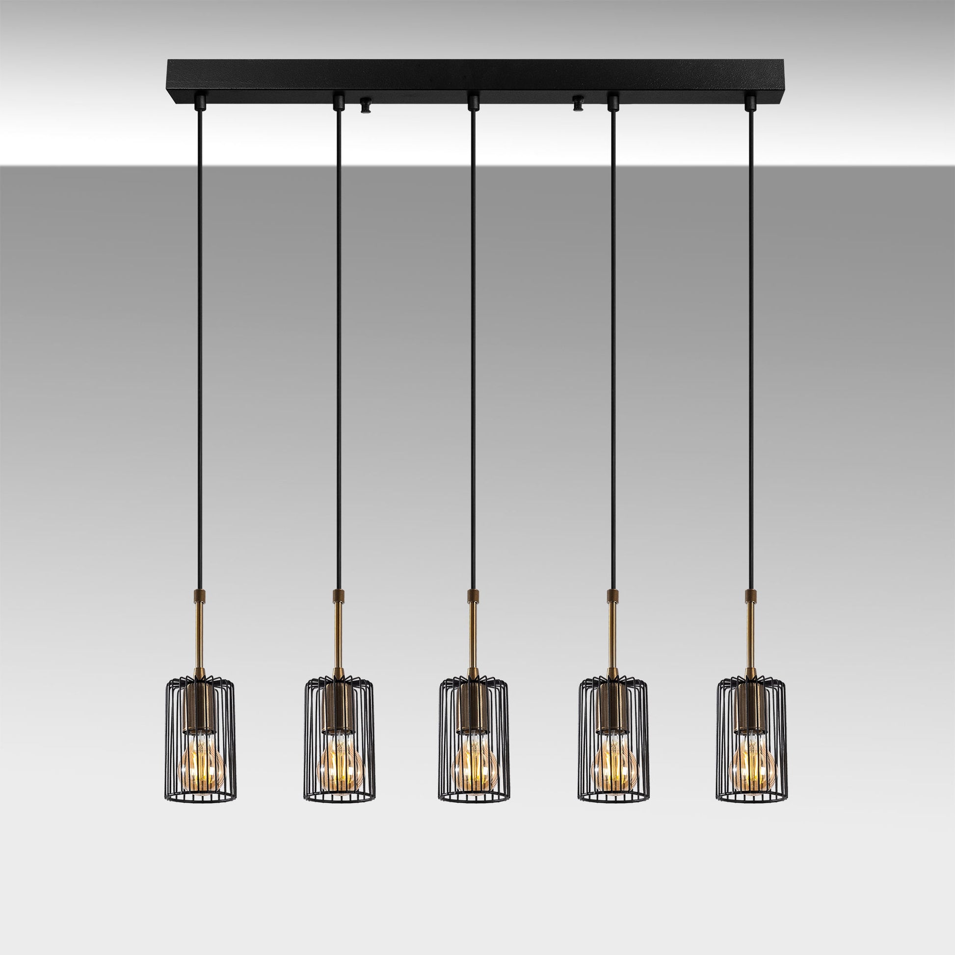 Candeeiro de Teto Industrial, Acabamento Preto e Antigo, 80 x 9 x 121 cm | Corpo em Metal, Altura Ajustável, 5 Soquetes E27, Perfeito para Espaços Modernos