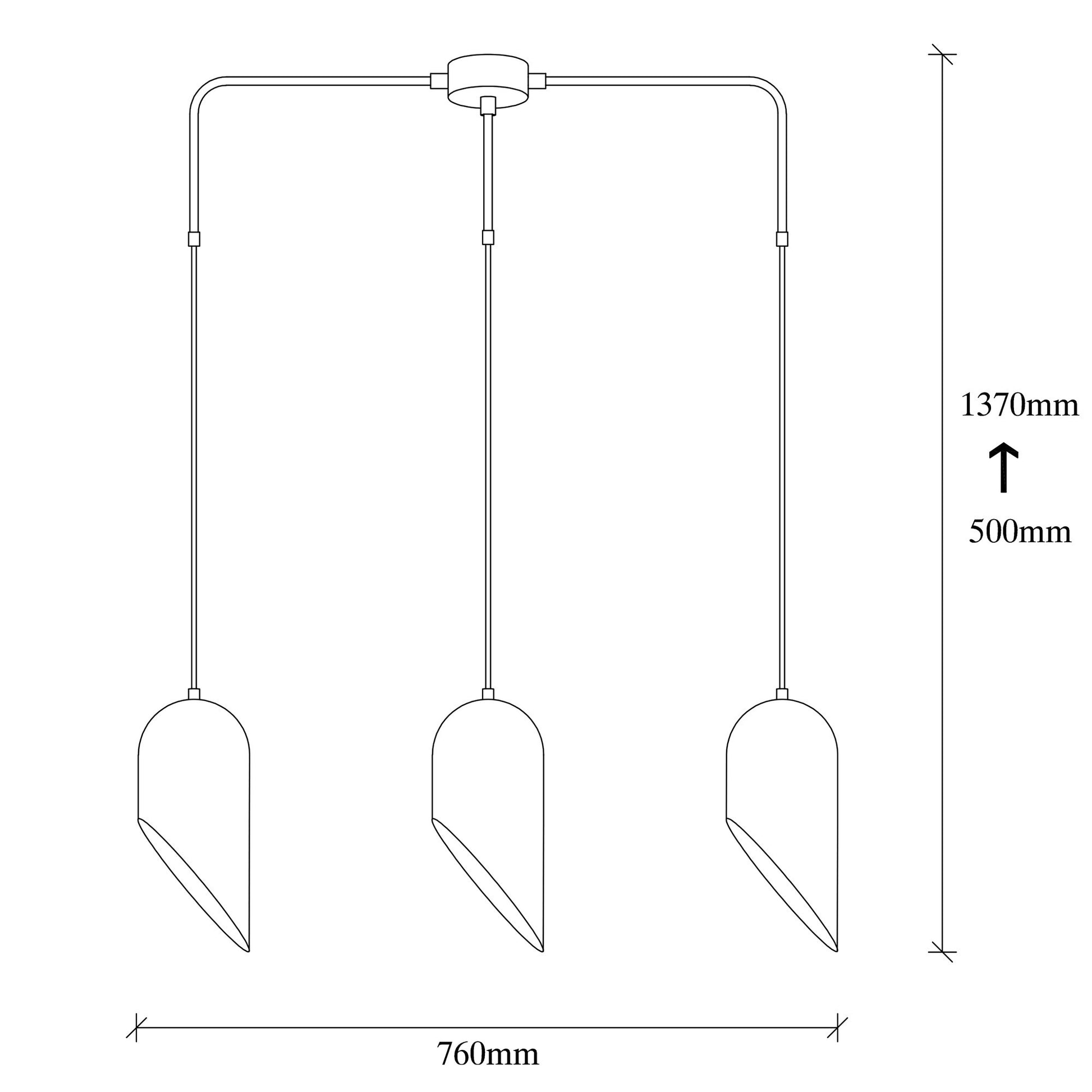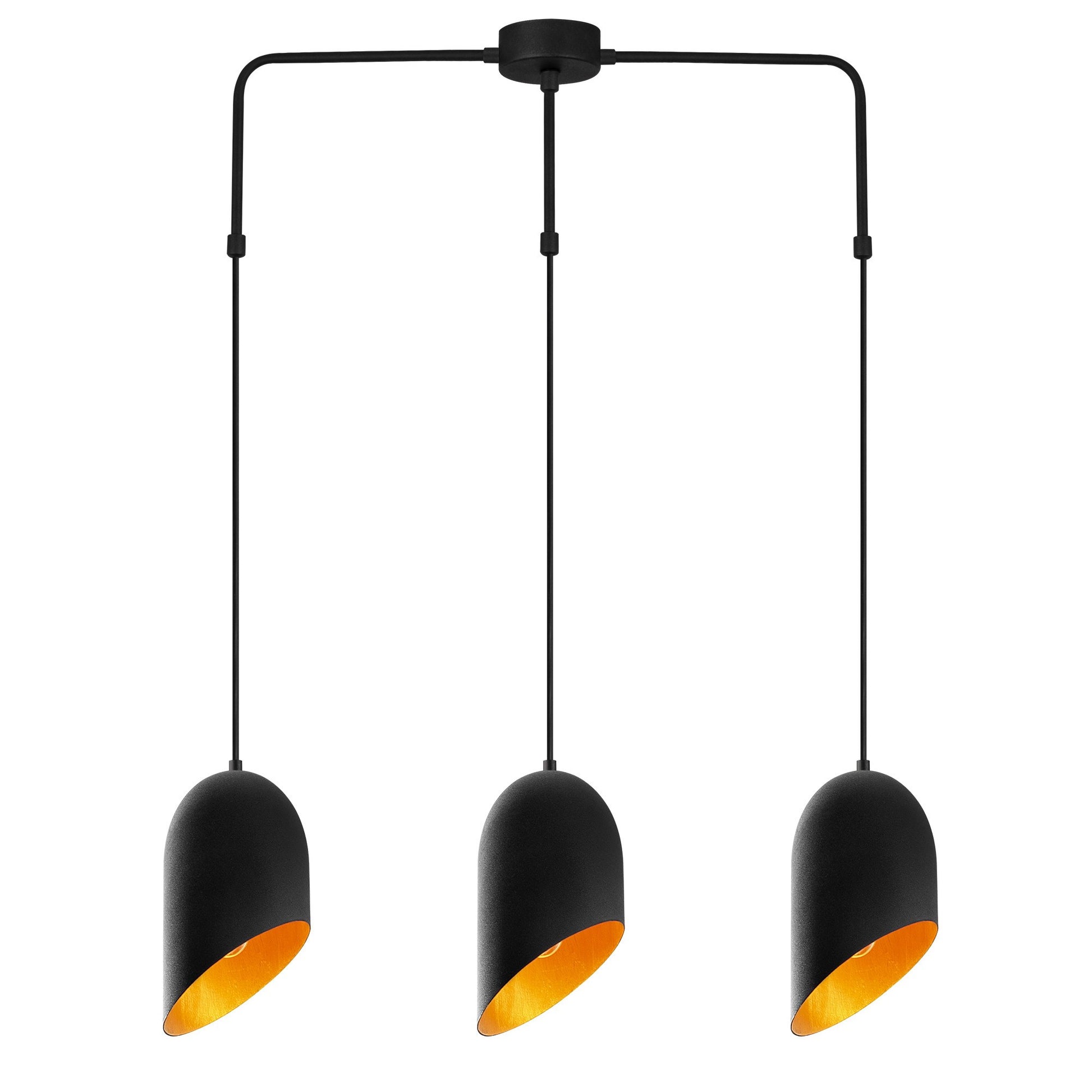 Candeeiro de Teto Industrial Moderno, Preto e Dourado, 76 x 12 cm, Altura 137 cm | Ajustável, 3 soquetes E27, Design Escandinavo Elegante | Perfeito para Casa e Escritório