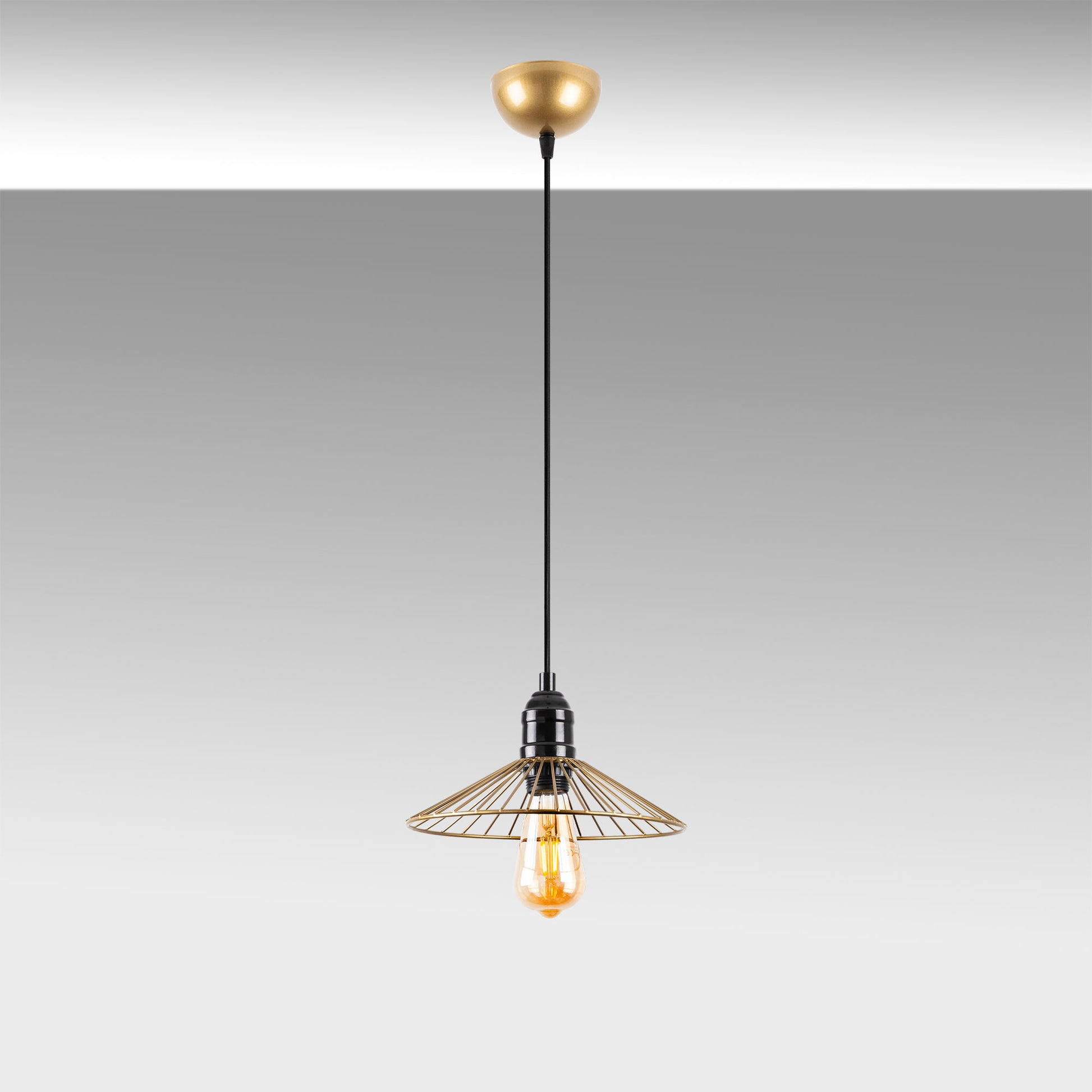 Candeeiro de Teto Dourado Brilhante e Glamouroso, Corpo em Metal, Altura Ajustável, 25 x 25 x 114 cm | Soquete E27, Potência Máxima de 40 W | Iluminação Elegante para Espaços Modernos