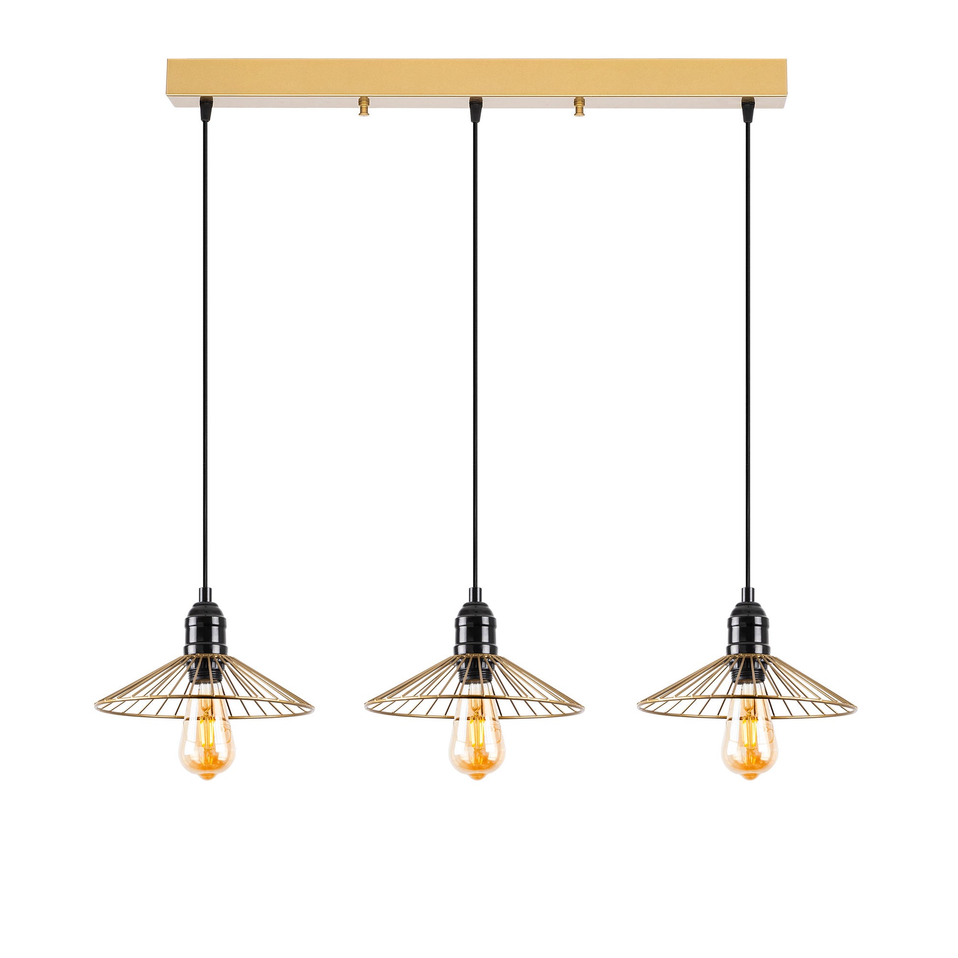 Candeeiro de Teto moderno dourado brilhante, 98 x 25 x 114 cm | Corpo de metal, altura ajustável, 3 soquetes E27 | Iluminação elegante para decoração de casa e escritório