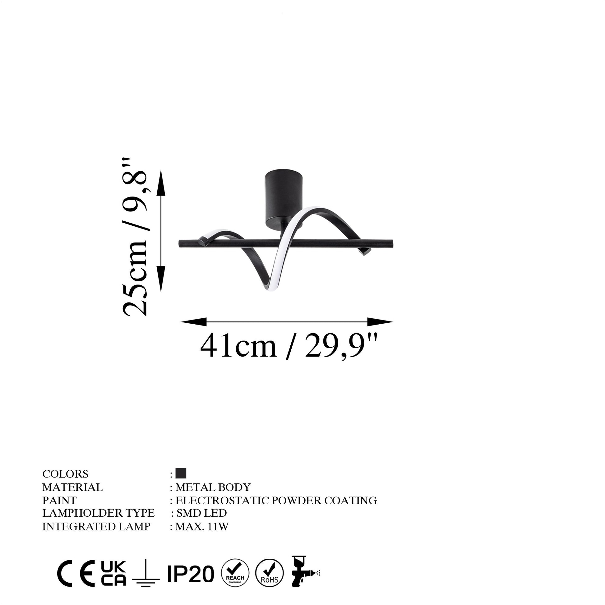 Candeeiro de Teto Preto Elegante, Corpo em Metal, 41 x 25 x 16 cm | LED SMD 11W 3000K | Iluminação Elegante para Decoração e Ambiente Modernos