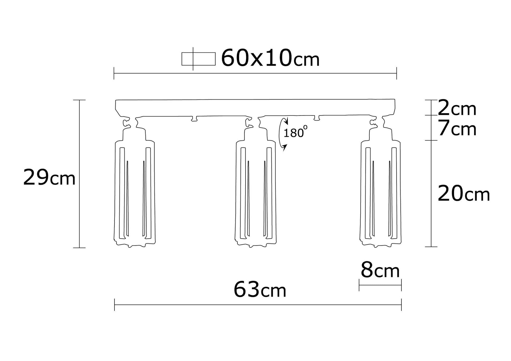 - Tamanho da placa de base: 58 x 6 x 4 cm