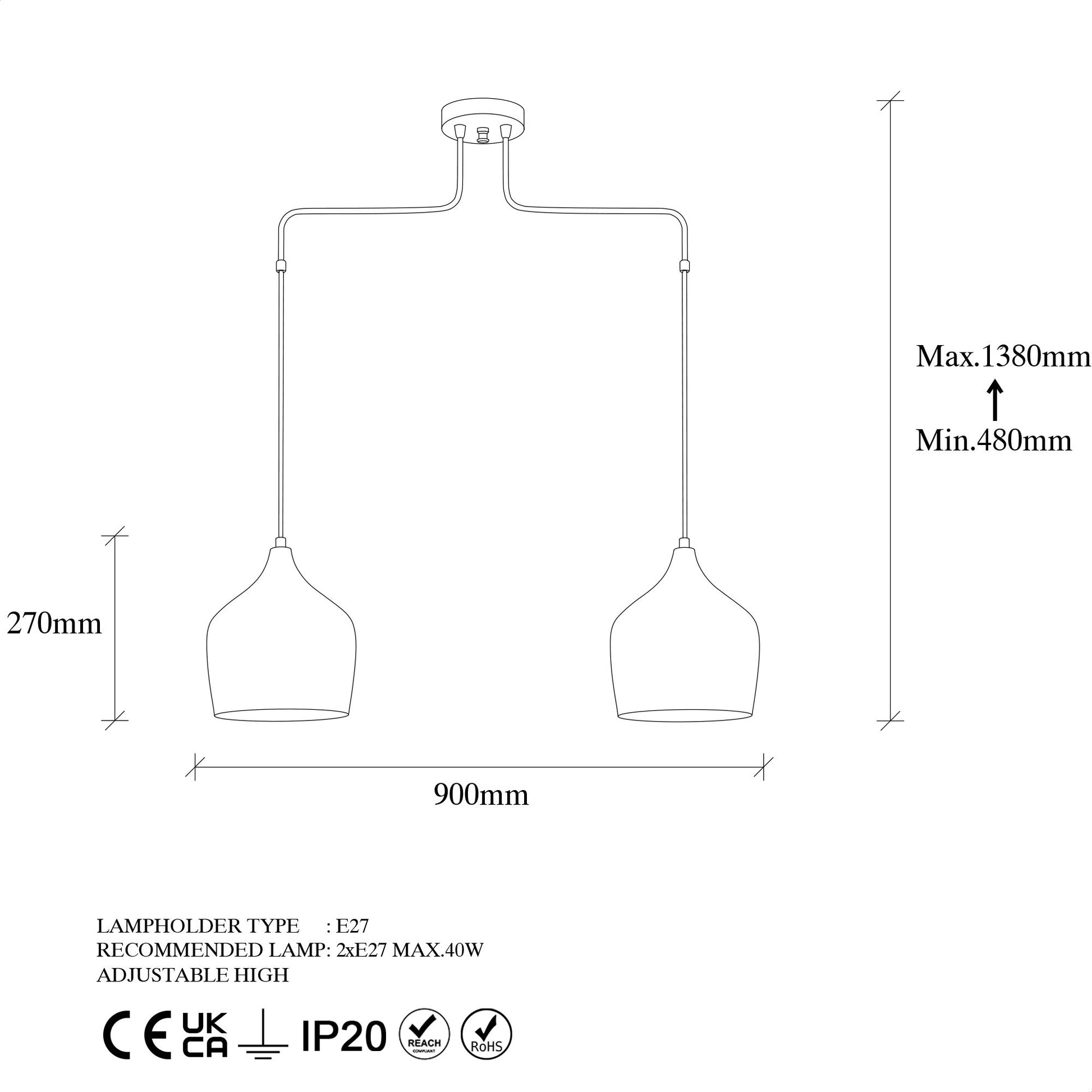 - Tipo de casquilho: 2 x E27 Max 40 W