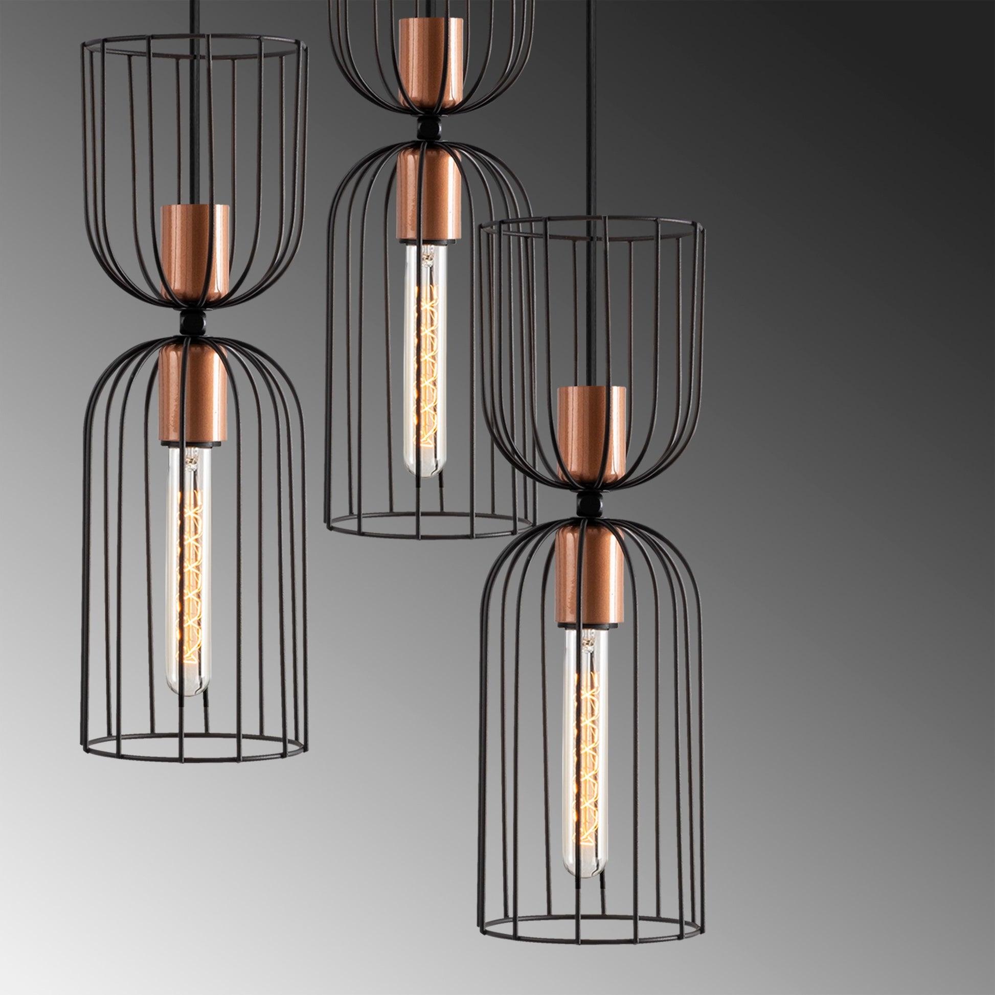 Candeeiro de Teto preto moderno, altura ajustável de 140 cm, corpo de metal, 38 x 38 cm, 3 x E27 máx. 40 W, design elegante para casa e escritório, classificação IP20
