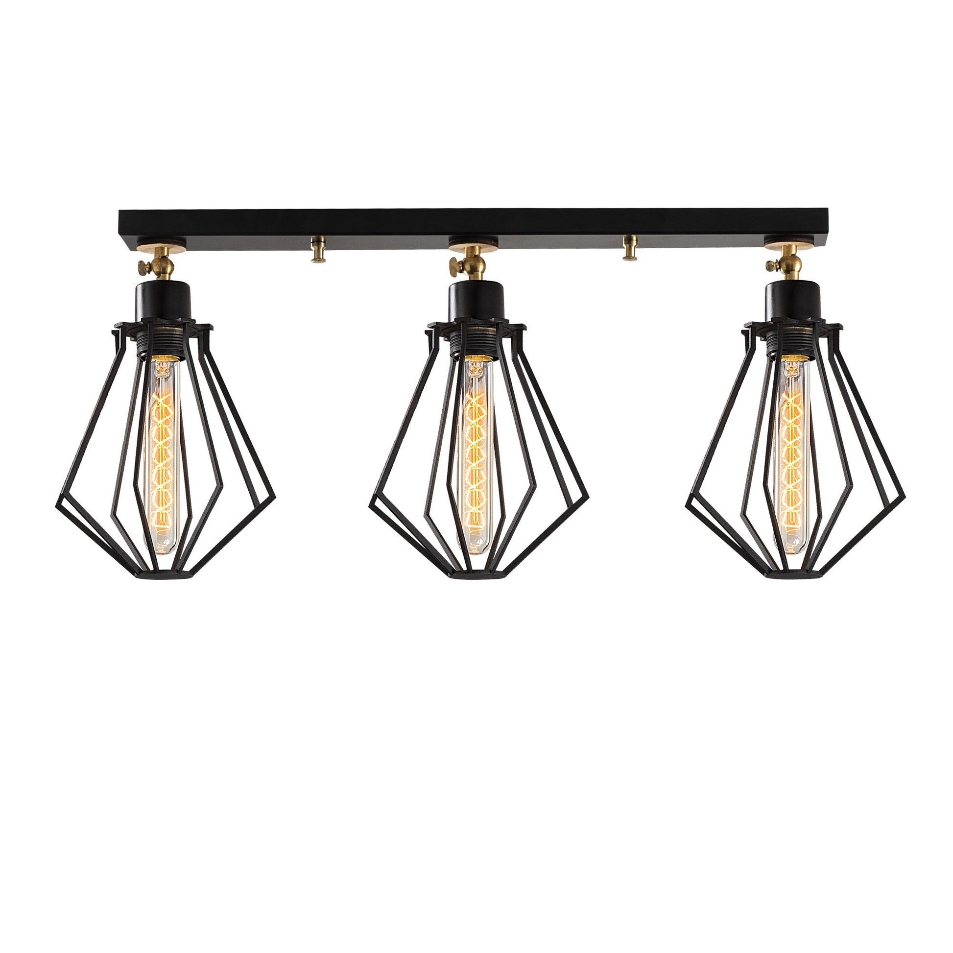 Candeeiro de Teto Industrial Moderno, Preto e Dourado, 70 x 18 cm | Corpo em Metal, 3 Soquetes E27, Altura: 29 cm | Iluminação Elegante para Casa e Escritório