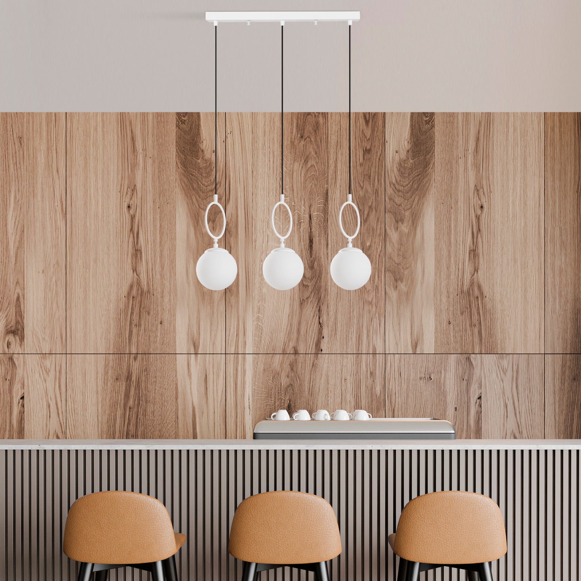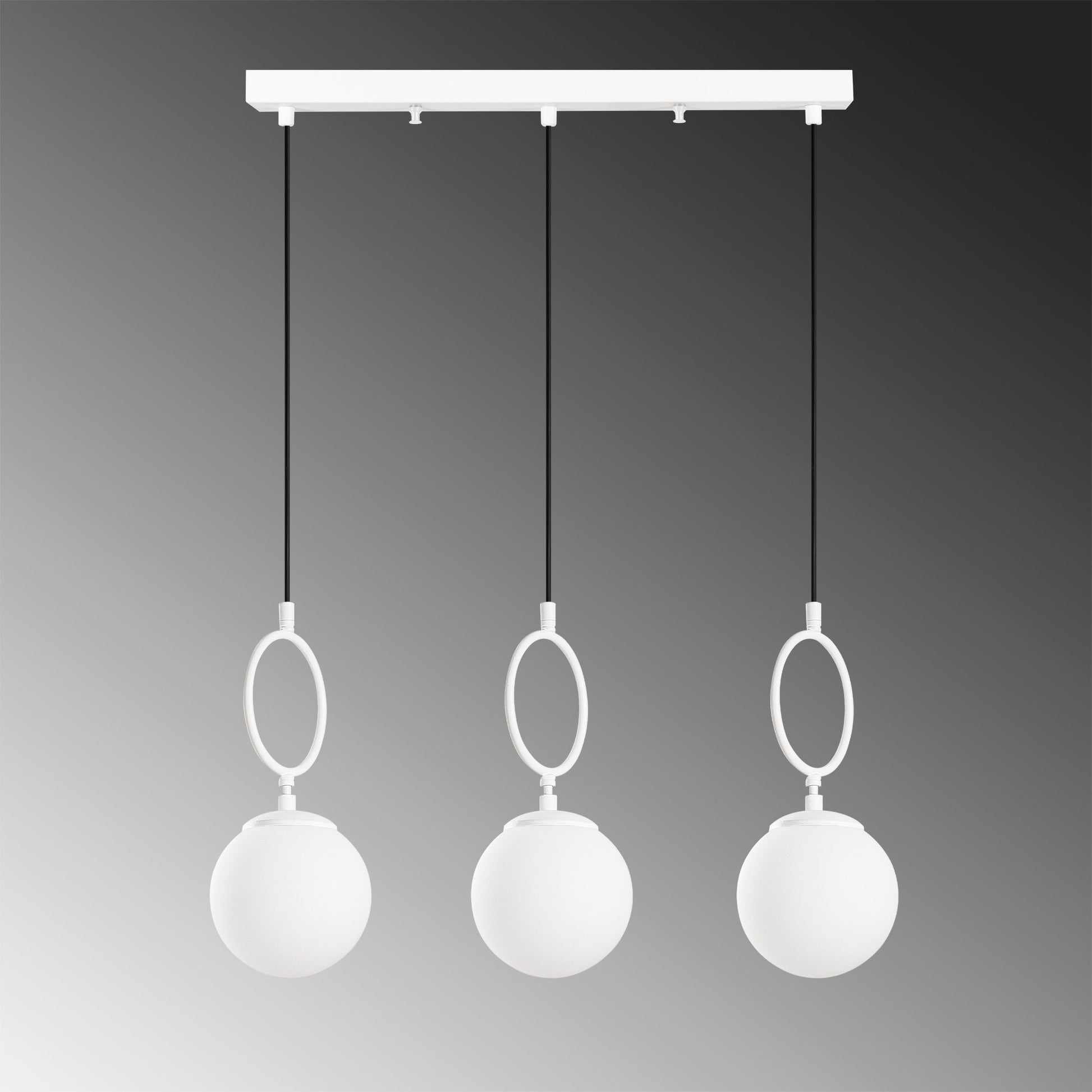 Candeeiro de Teto Branco Elegante, Corpo em Metal, 75 cm de Largura, Altura Ajustável (40-185 cm), 3 Tomadas E14, IP20 | Perfeito para Salas de Estar e Jantar Modernas