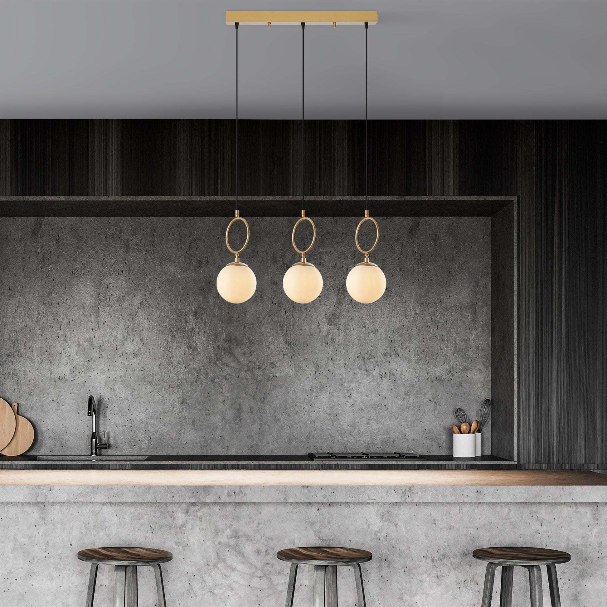 Candeeiro de Teto Dourado Elegante, Corpo em Metal, 75 cm de Largura, Altura Ajustável (40-185 cm), 3 x E14 Máx. 40 W, IP20 | Perfeito para Salas de Estar e Jantar Modernas