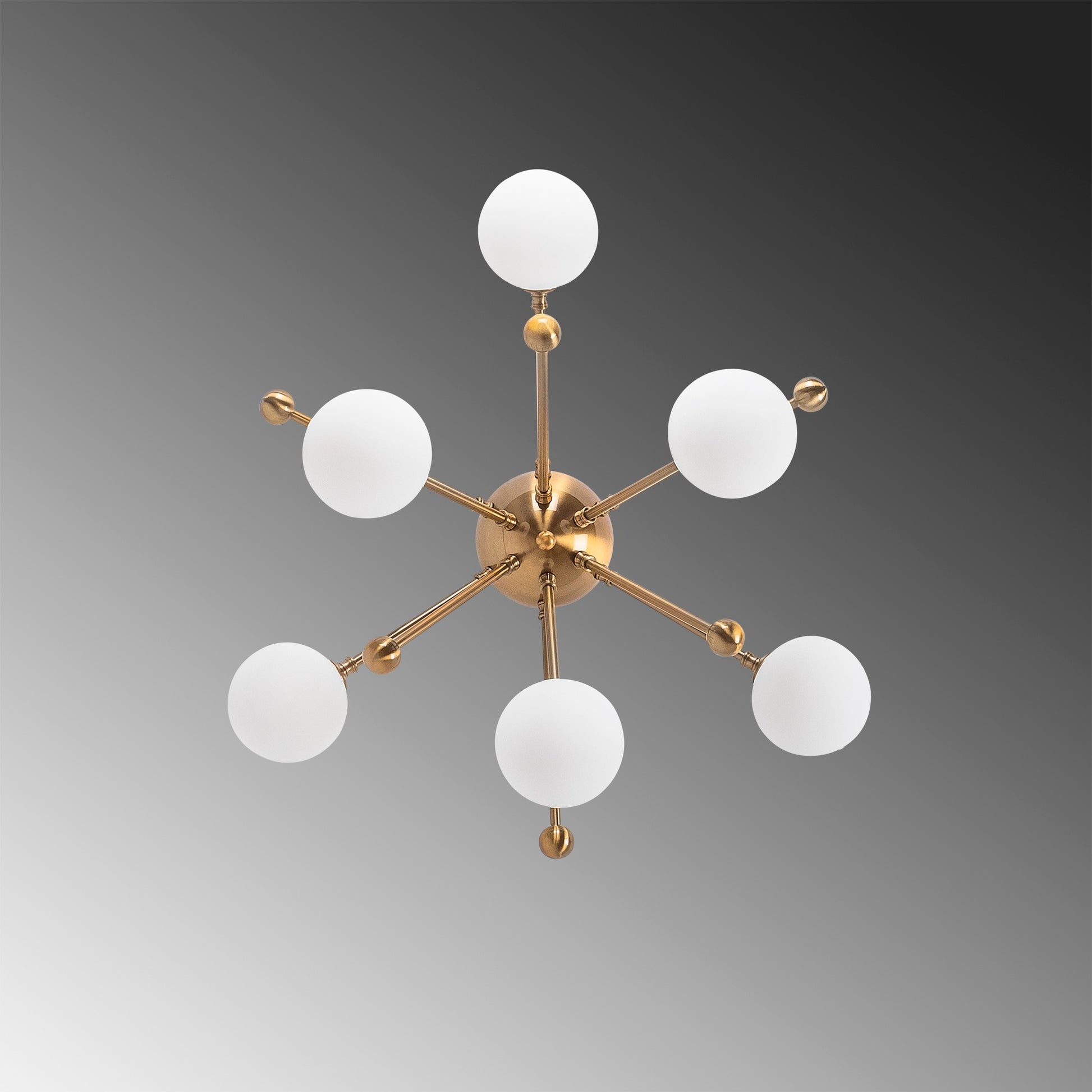 Candeeiro de Teto Vintage Elegante, Corpo de Metal com Tampa de Vidro, 50 x 50 x 28 cm, Acabamento em Cobre, 6 Soquetes G9 (Lâmpada Não Inclusa) | Design Moderno e Glamouroso para Decoração de Casa