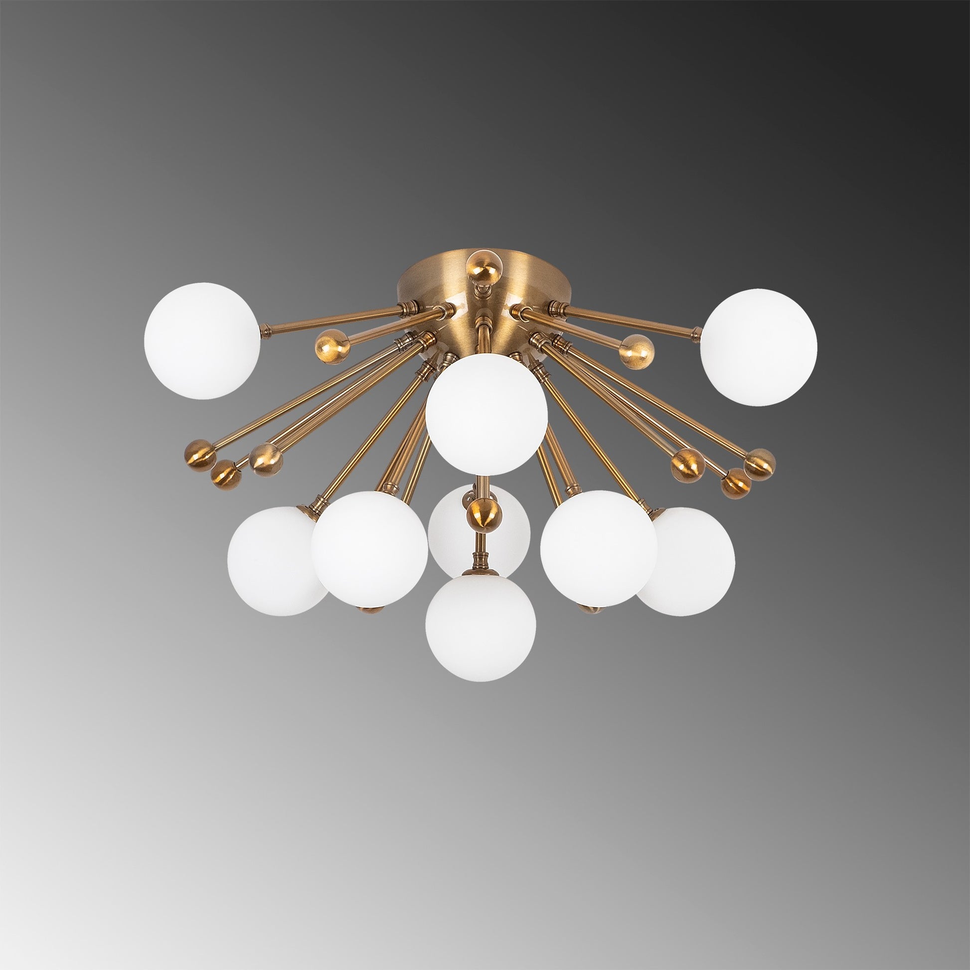 Candeeiro de Teto elegante de cobre, 56 x 56 x 34 cm, corpo de metal com tampa de vidro, design vintage, 9 soquetes G9 (lâmpada não incluída), perfeito para decoração moderna e escandinava