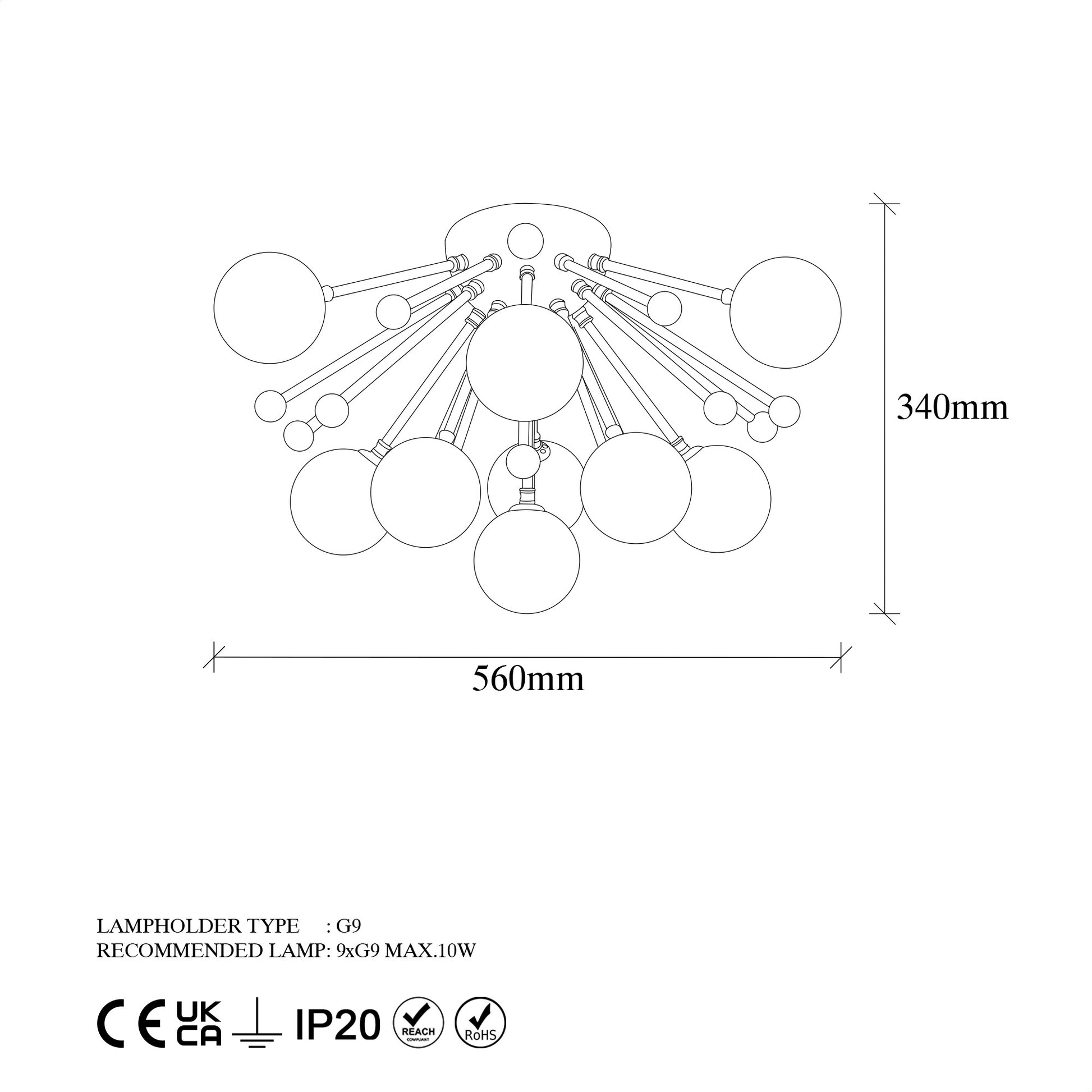- Tipo de soquete: 9 x G9 Max 10 W