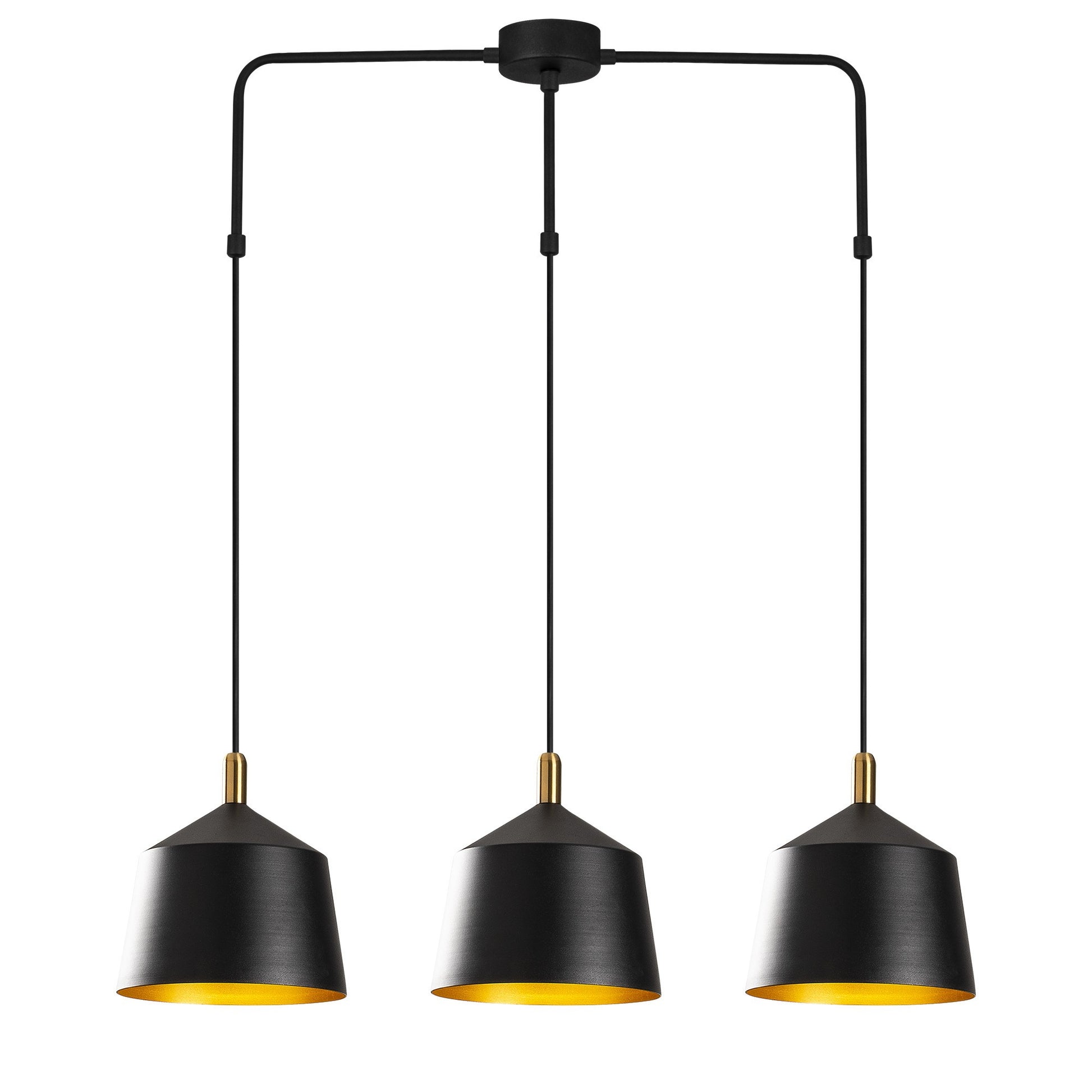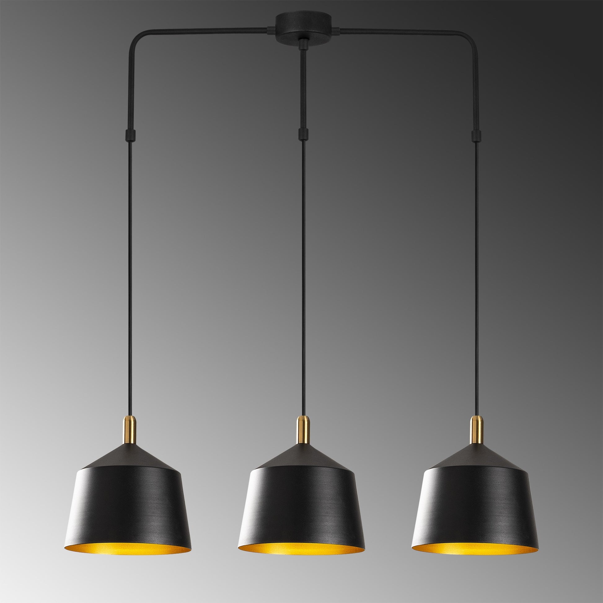 Candeeiro de Teto Industrial Moderno, Preto e Dourado, 89 x 25 cm | Altura Ajustável, 3 x E27 máx. 40 W | Iluminação Elegante para Casa e Escritório
