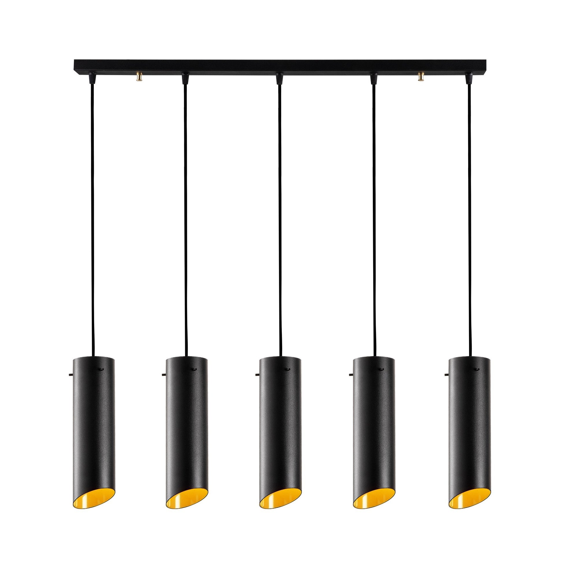 Candeeiro de Teto Industrial Moderno, Preto e Amarelo, 85 x 8 cm | Altura Ajustável, 5 Soquetes E27, IP20 | Perfeito para Decoração Escandinava e Moderna