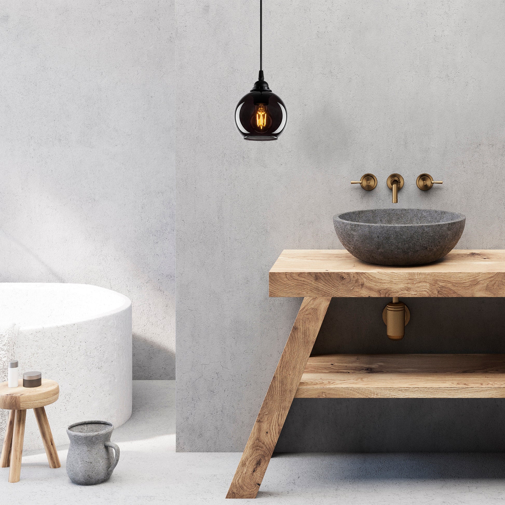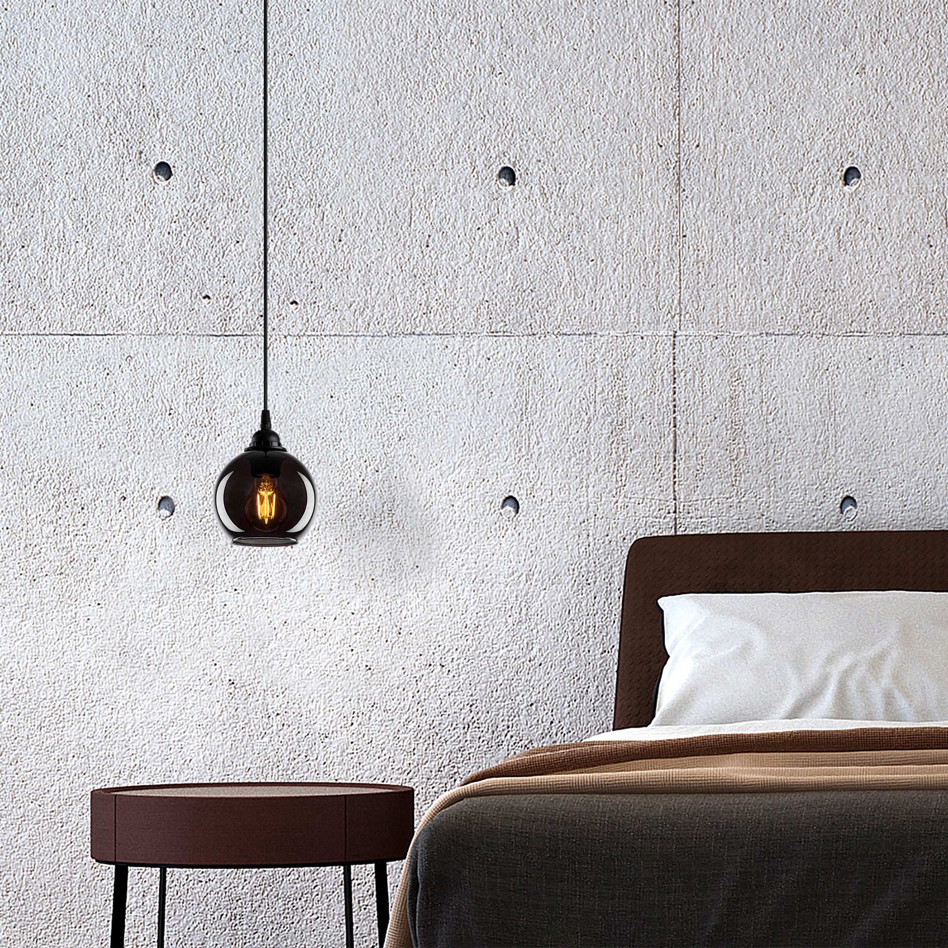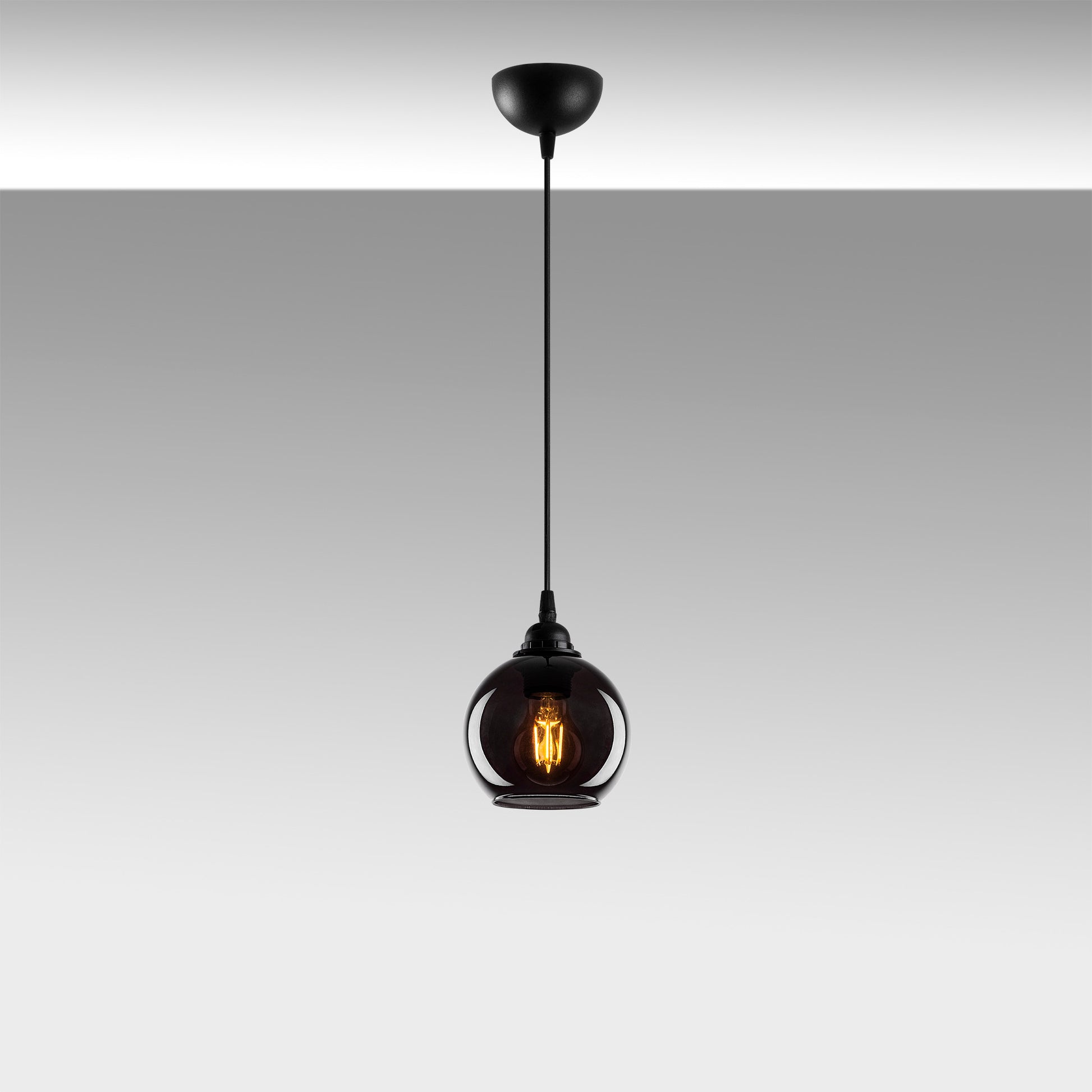 Com uma tampa de vidro, o nosso candeeiro cria um jogo de luz hipnotizante, lançando um brilho quente e convidativo na sua sala de estar. A cor fumada acrescenta um toque de mistério e fascínio, tornando-o numa peça central cativante que irá certamente impressionar os seus convidados.