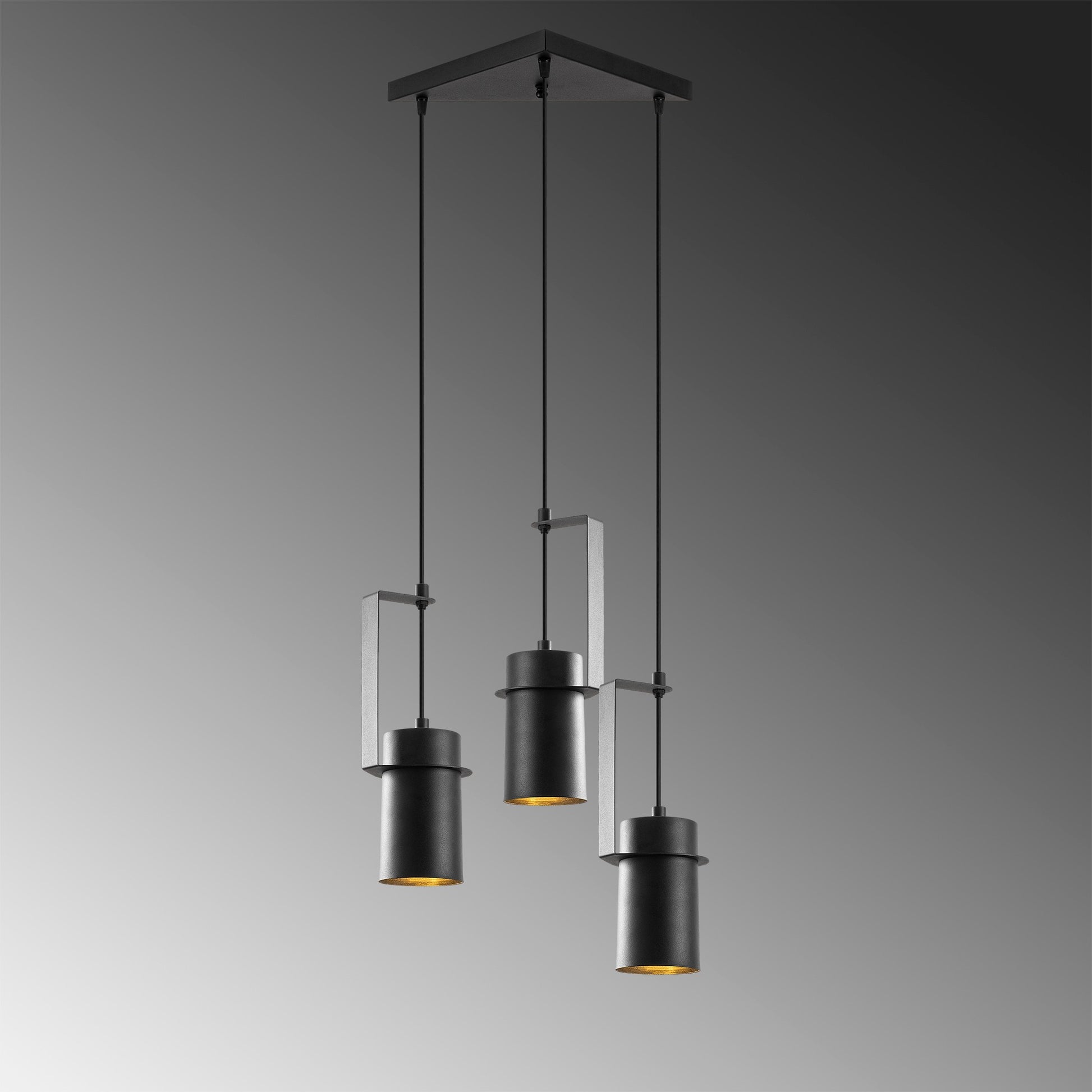 Candeeiro de Teto industrial preto, corpo de metal, 40 x 40 cm, altura 126 cm, ajustável, 3 x E27 máx. 40 W, design elegante para espaços modernos, classificação IP20.