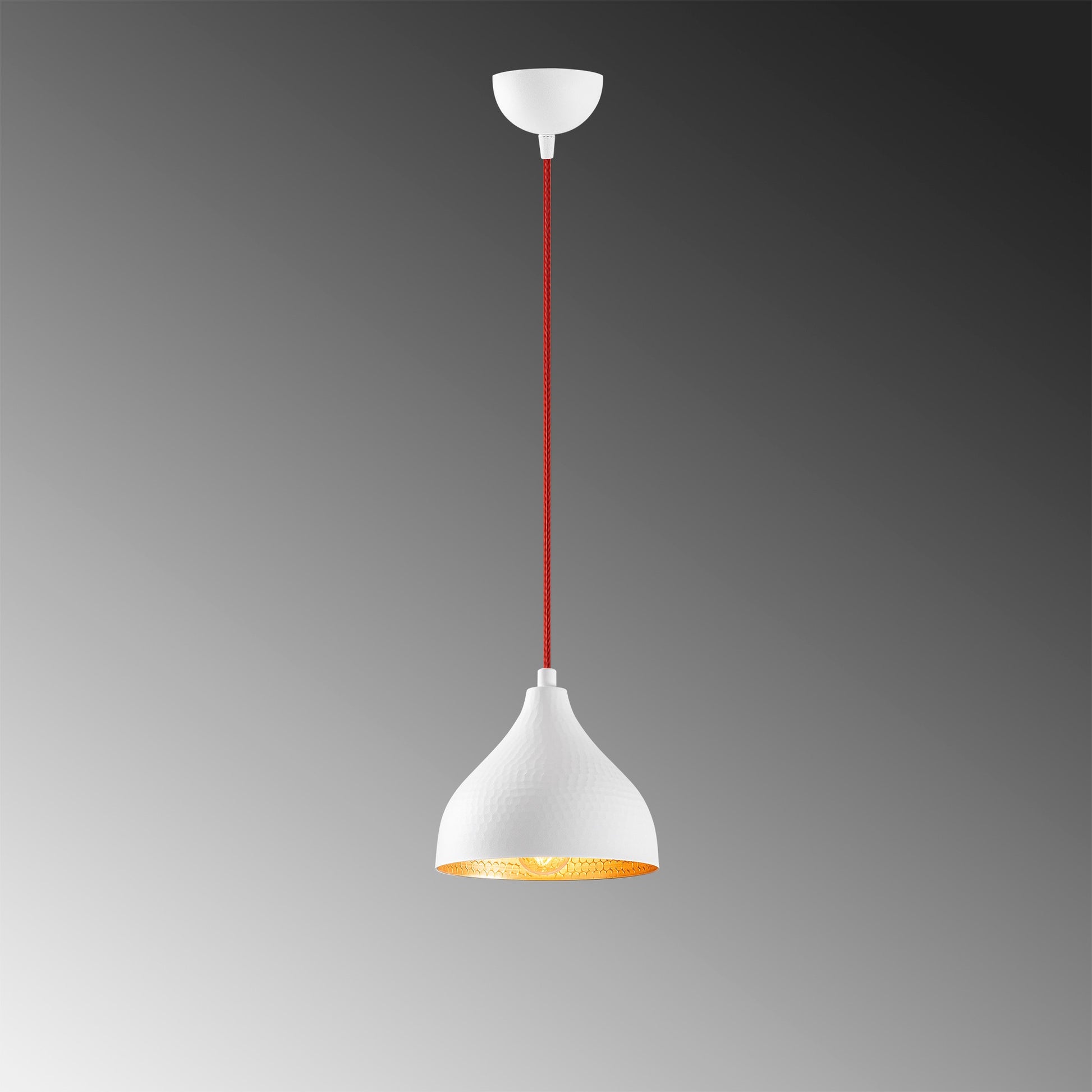 Candeeiro de Teto Escandinavo, Corpo de Metal, 18 x 18 cm, Altura 114 cm, Branco e Vermelho, Soquete E27, Máx. 40 W, Design Elegante para Espaços Modernos, Classificação IP20