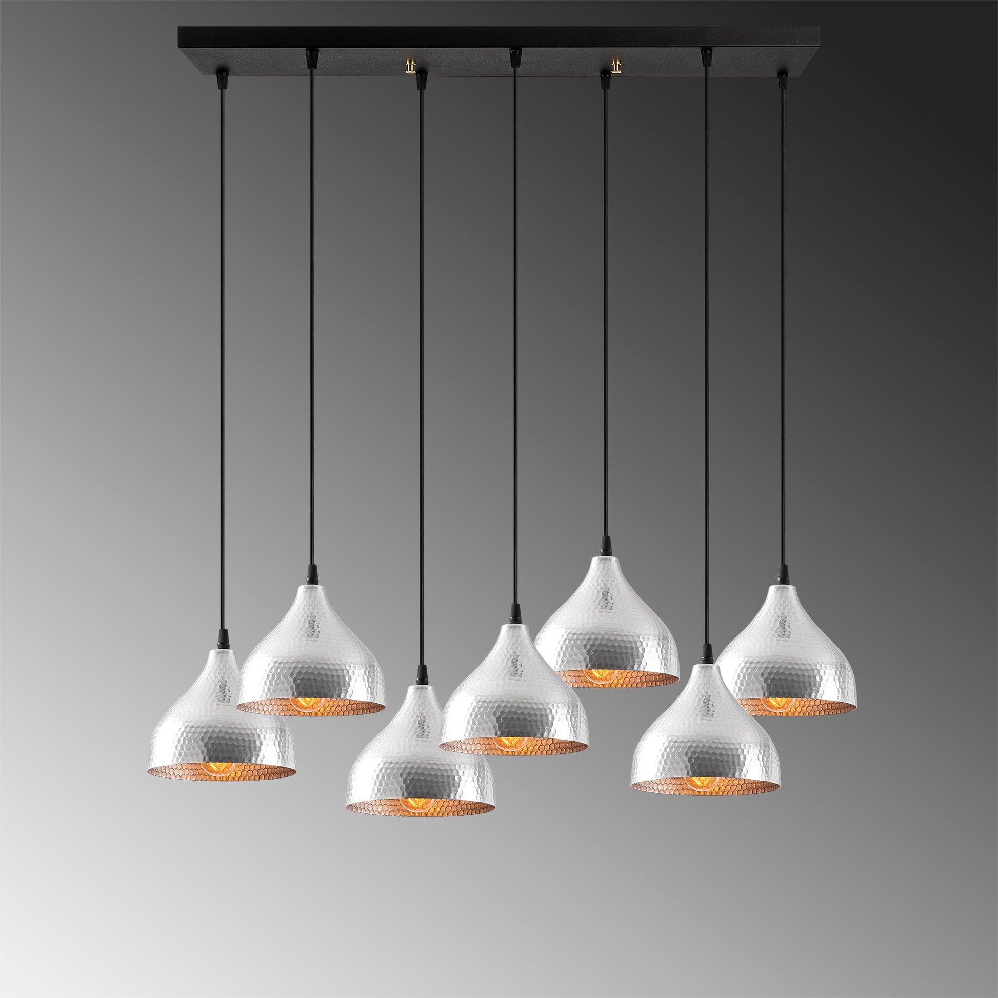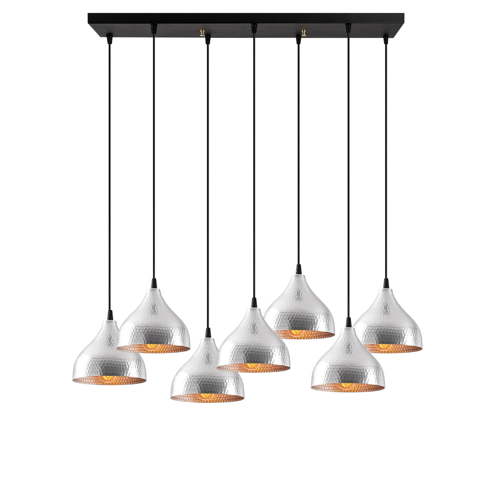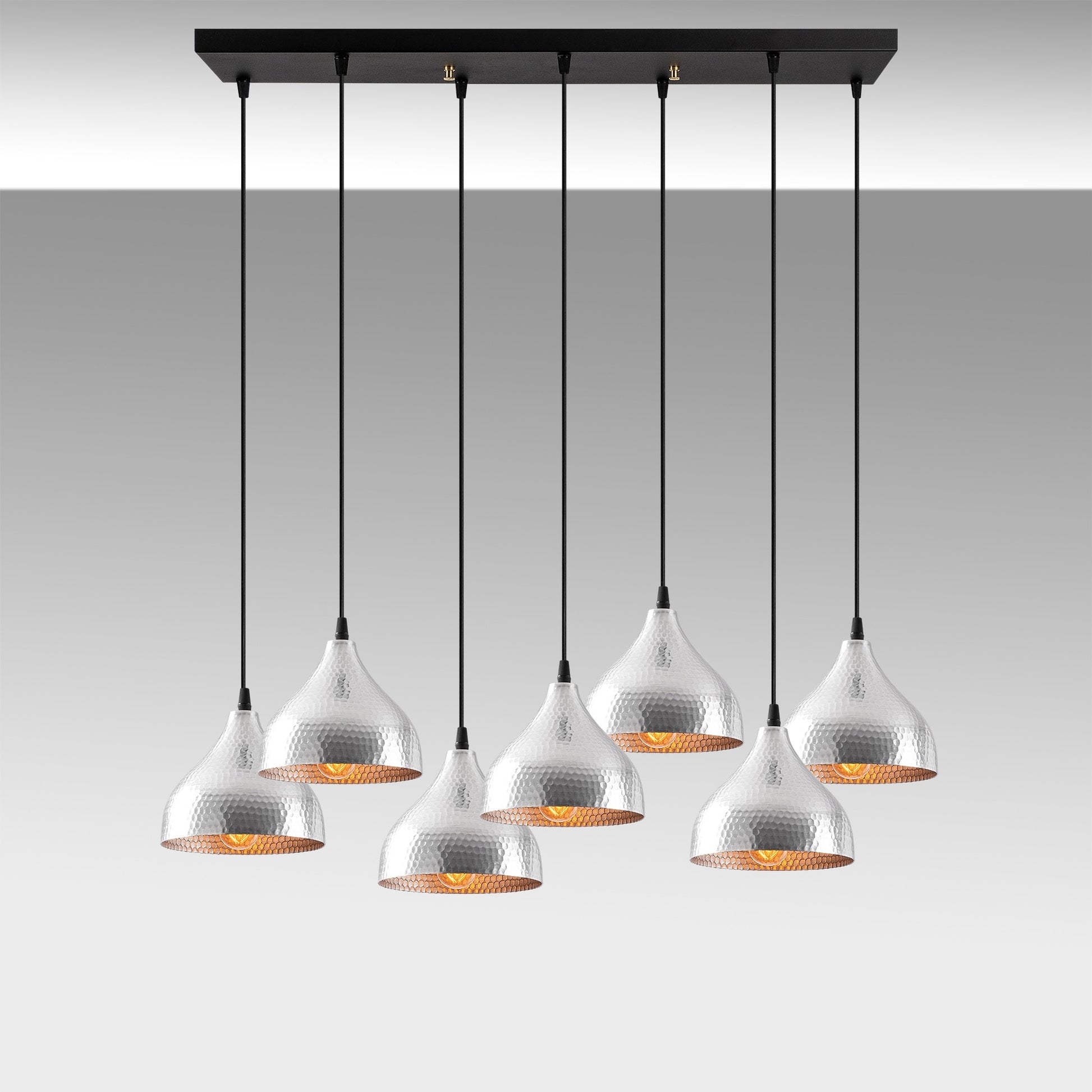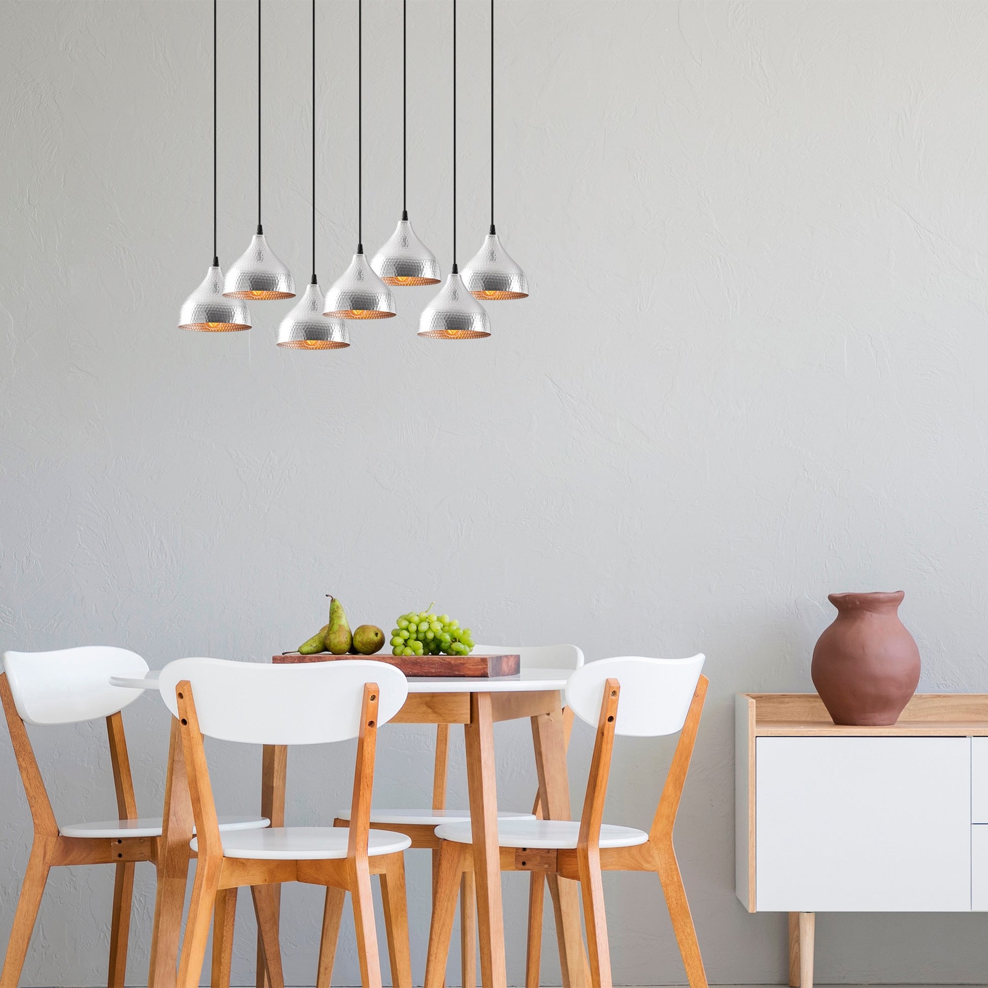 Candeeiro de Teto Escandinavo Elegante, Corpo em Metal Prateado, 88 x 40 cm, Altura 114 cm, Ajustável, 7 Soquetes E27, IP20 | Perfeito para Decoração Moderna