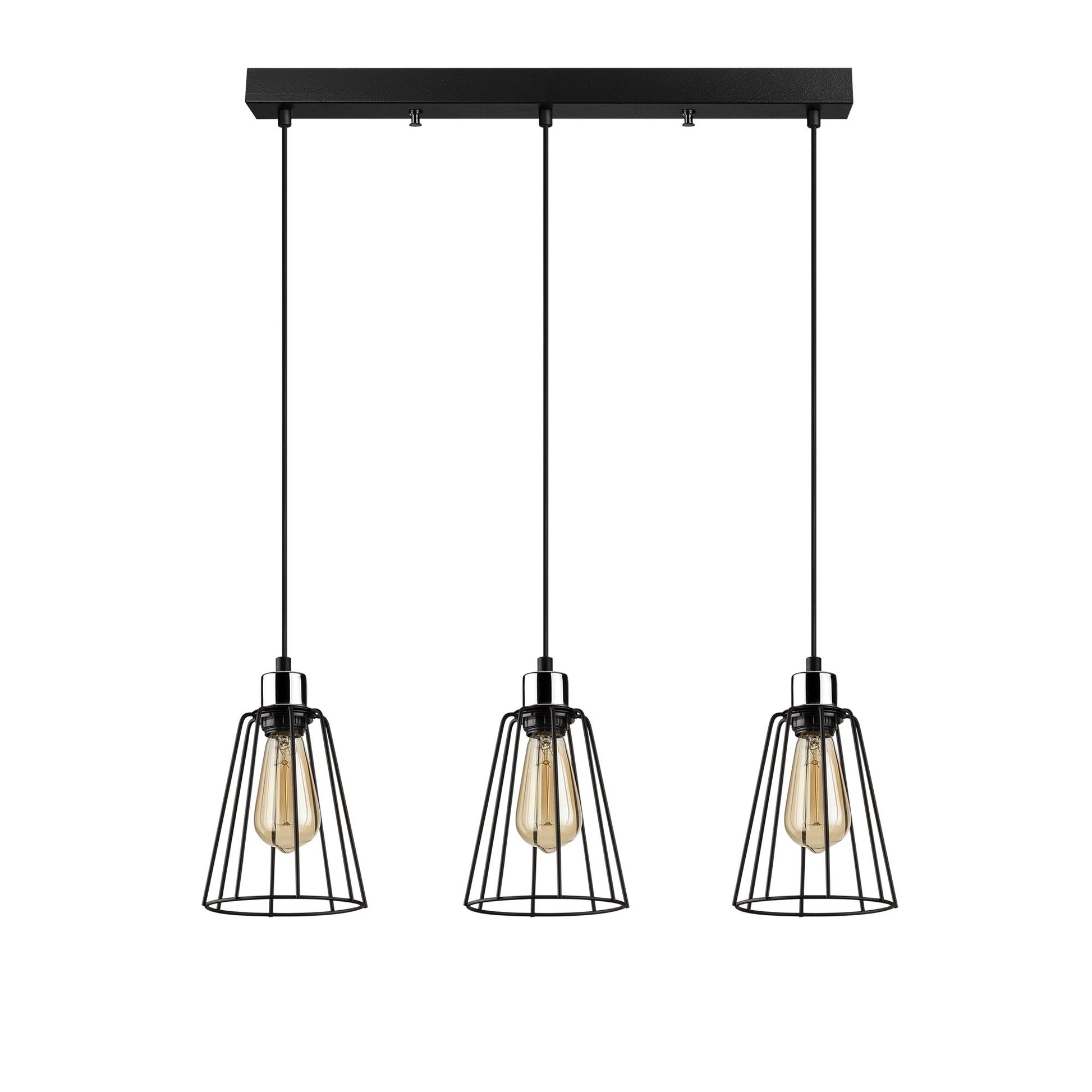 Candeeiro de Teto industrial preto, corpo de metal, 64 x 15 cm, altura 115 cm, ajustável, 3 x E27 máx. 40 W, design elegante e nostálgico para espaços modernos