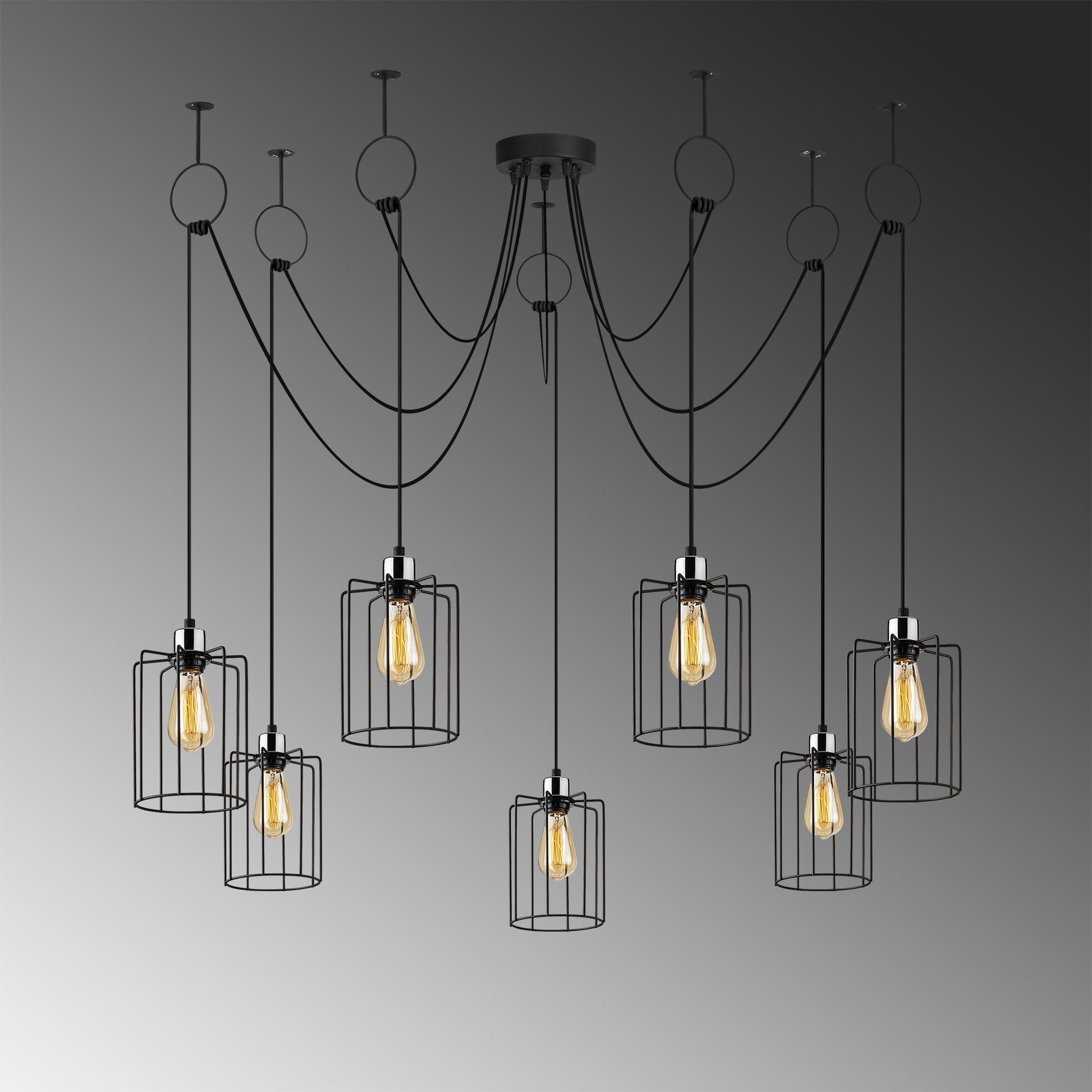Candeeiro de Teto industrial preto, 136 cm de diâmetro, altura ajustável, 7 x E27 máx. 40 W, corpo de metal, design elegante e nostálgico para espaços modernos