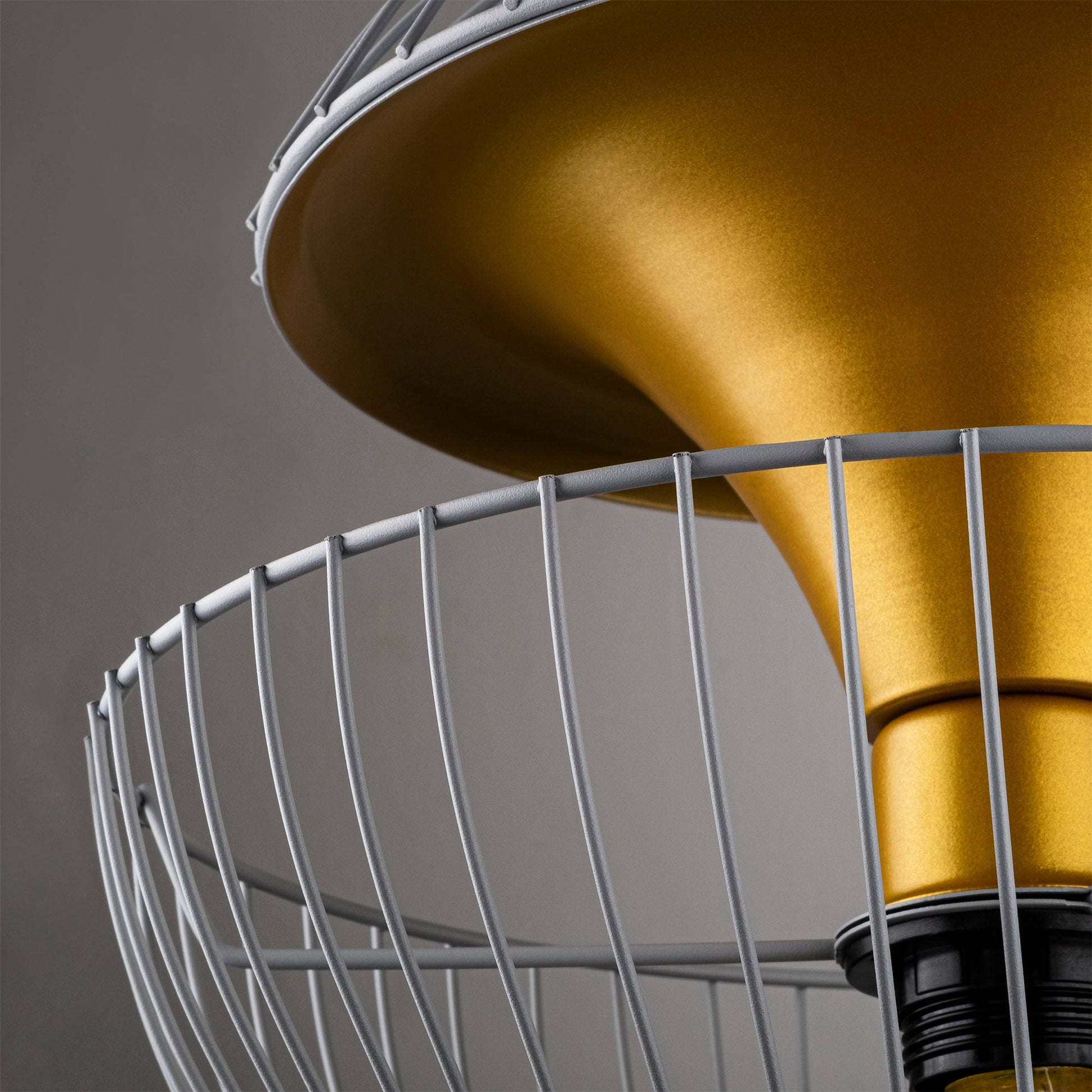 A tampa metálica e a placa de base deste candeeiro dão um toque de elegância e força, tornando-o numa peça de referência que irá cativar os seus convidados. O design elegante e a cor cinzenta sólida criam uma estética moderna e inovadora, perfeita para quem procura um toque contemporâneo.