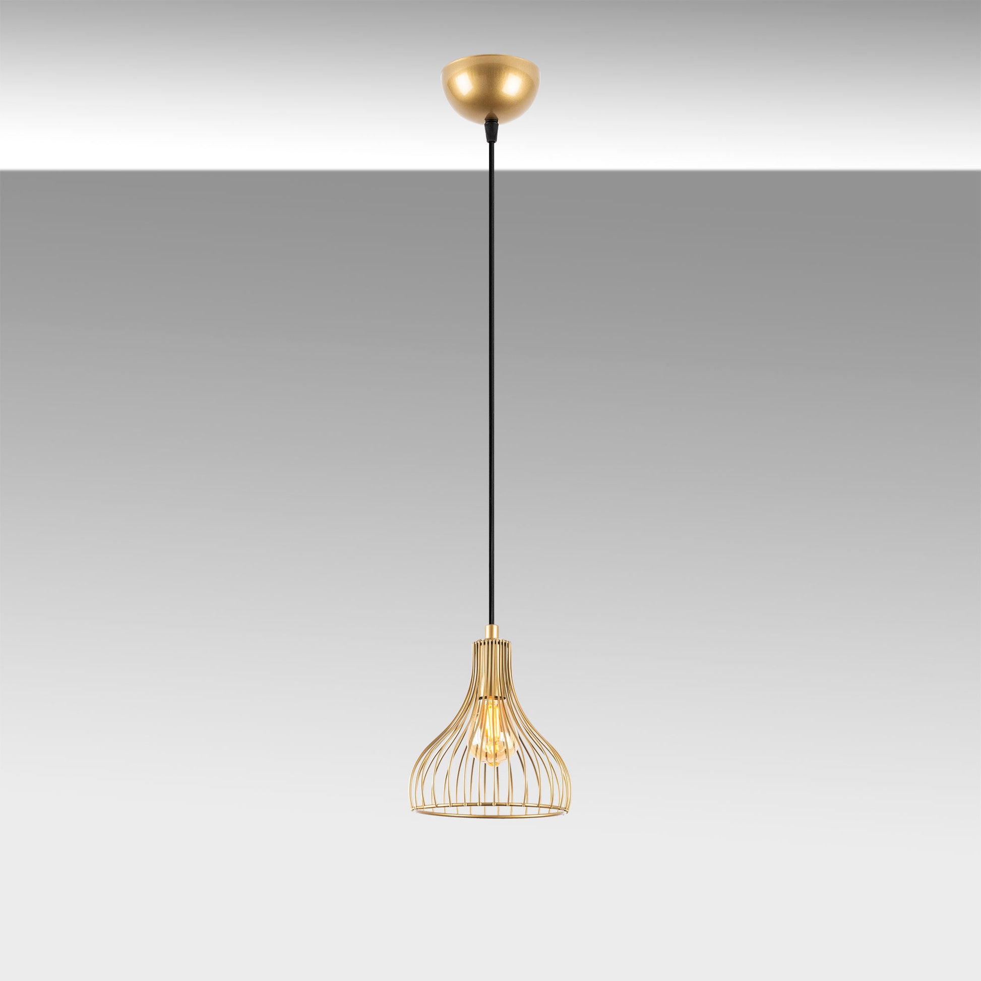 Candeeiro de Teto Dourado Elegante, Corpo em Metal, 20 x 20 x 117 cm | Altura Ajustável, Soquete E27, Design Moderno e Glamouroso | Perfeito para Salas de Estar e Salas de Jantar
