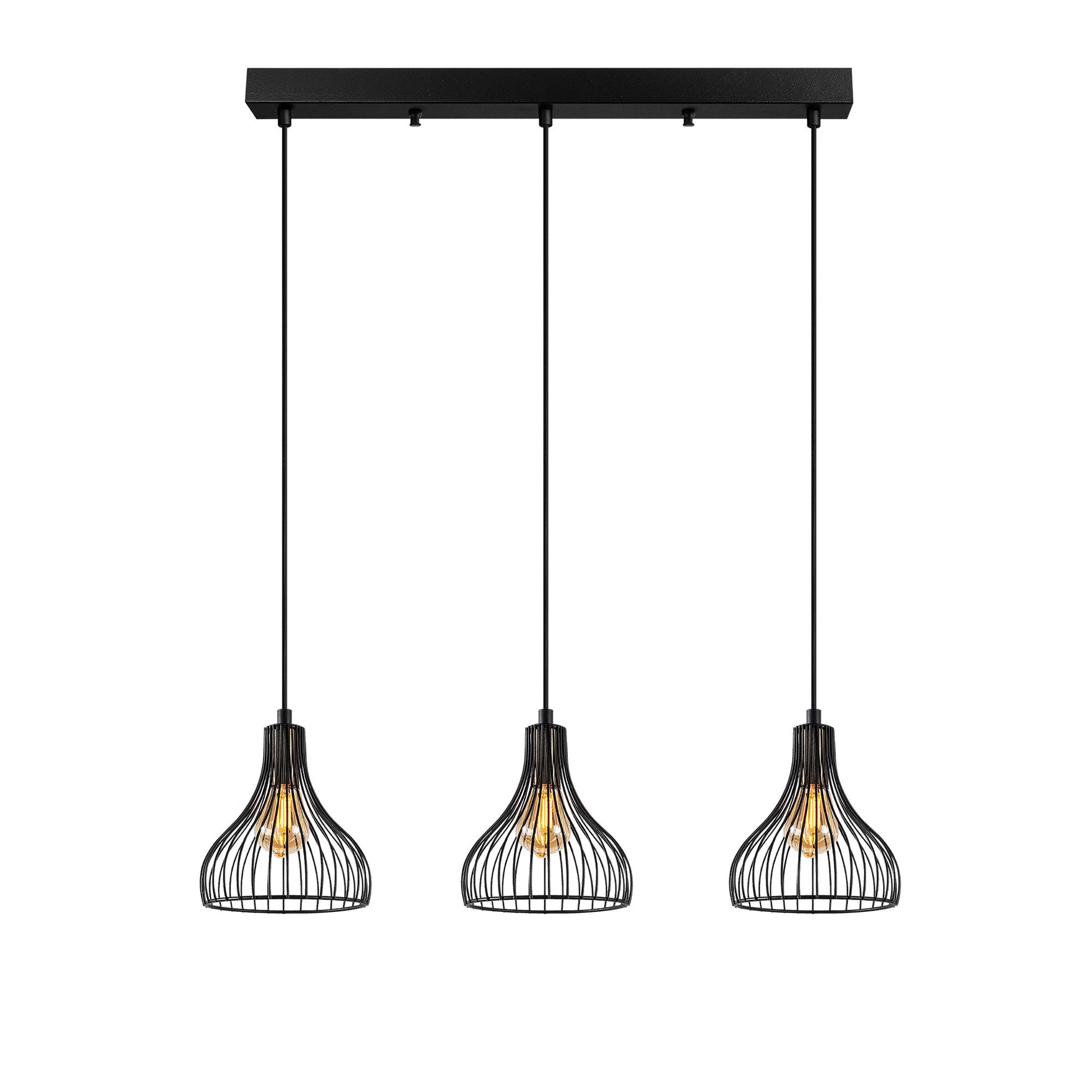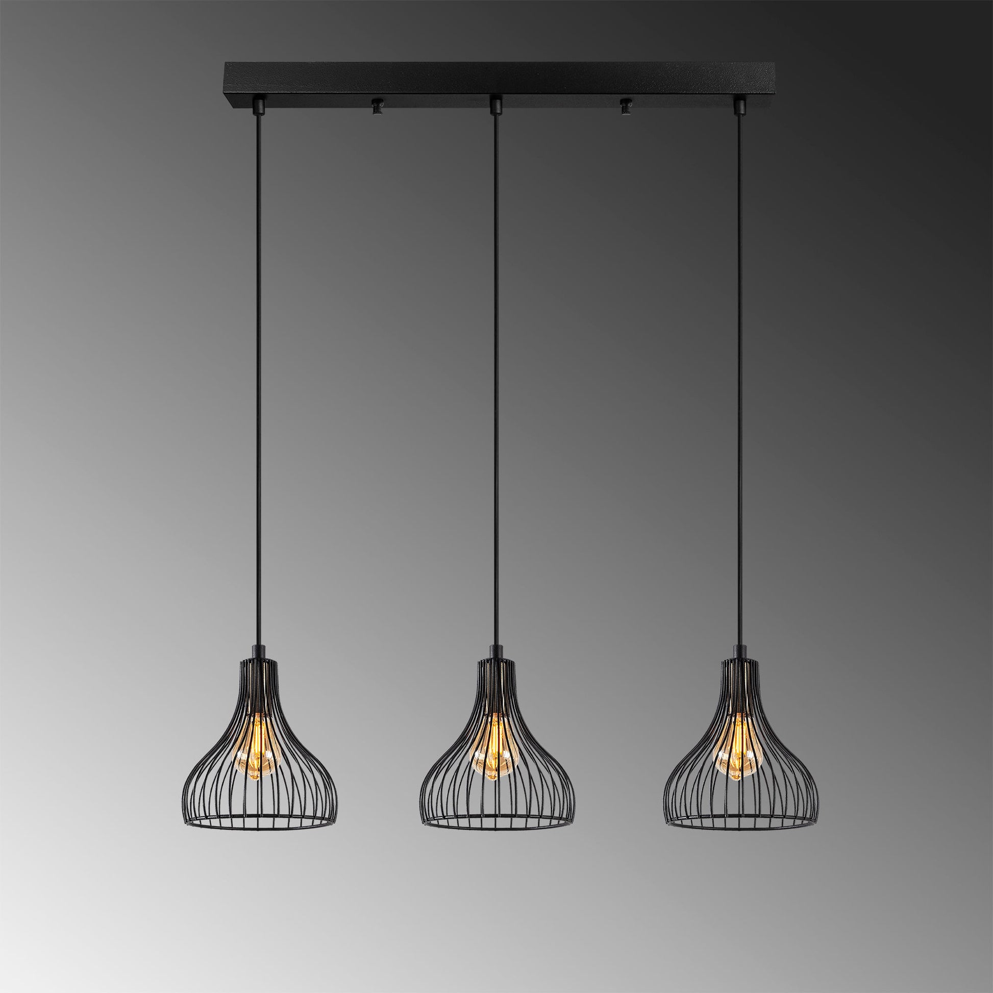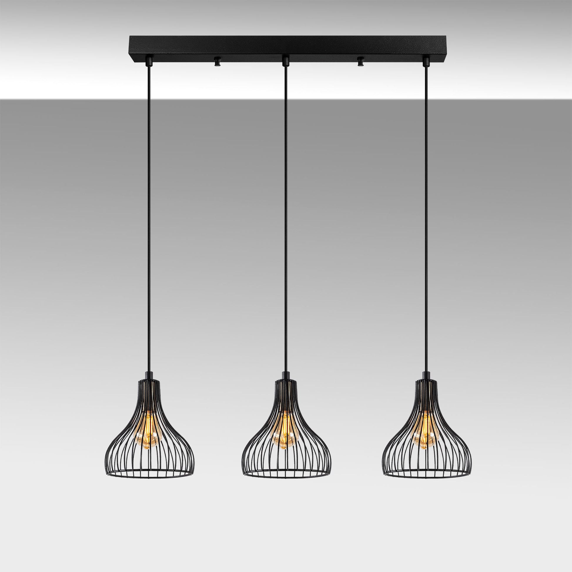 Candeeiro de Teto Industrial, Acabamento Preto e Antigo, 70 x 20 x 117 cm | Corpo em Metal, Altura Ajustável, 3 Soquetes E27 | Perfeito para Decoração Moderna
