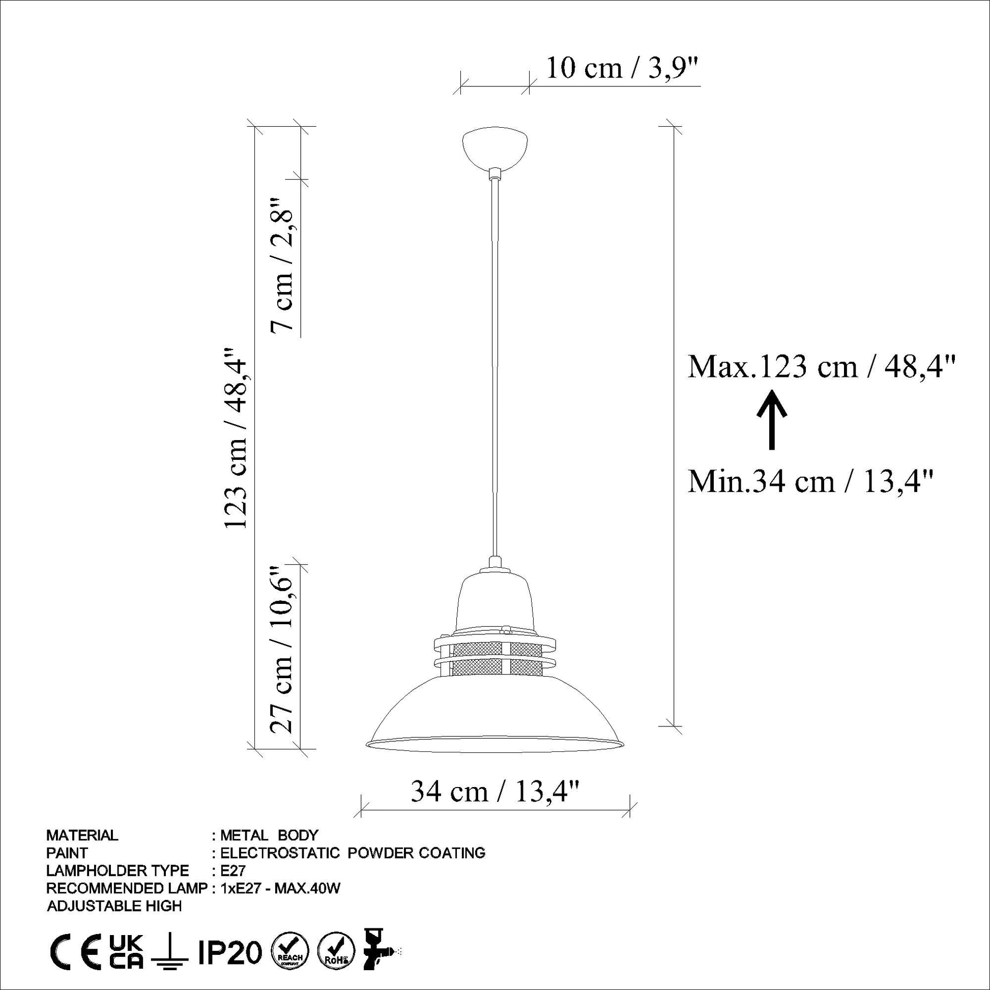 - Tipo de Soquete: 1 x E 27 Max 40 W