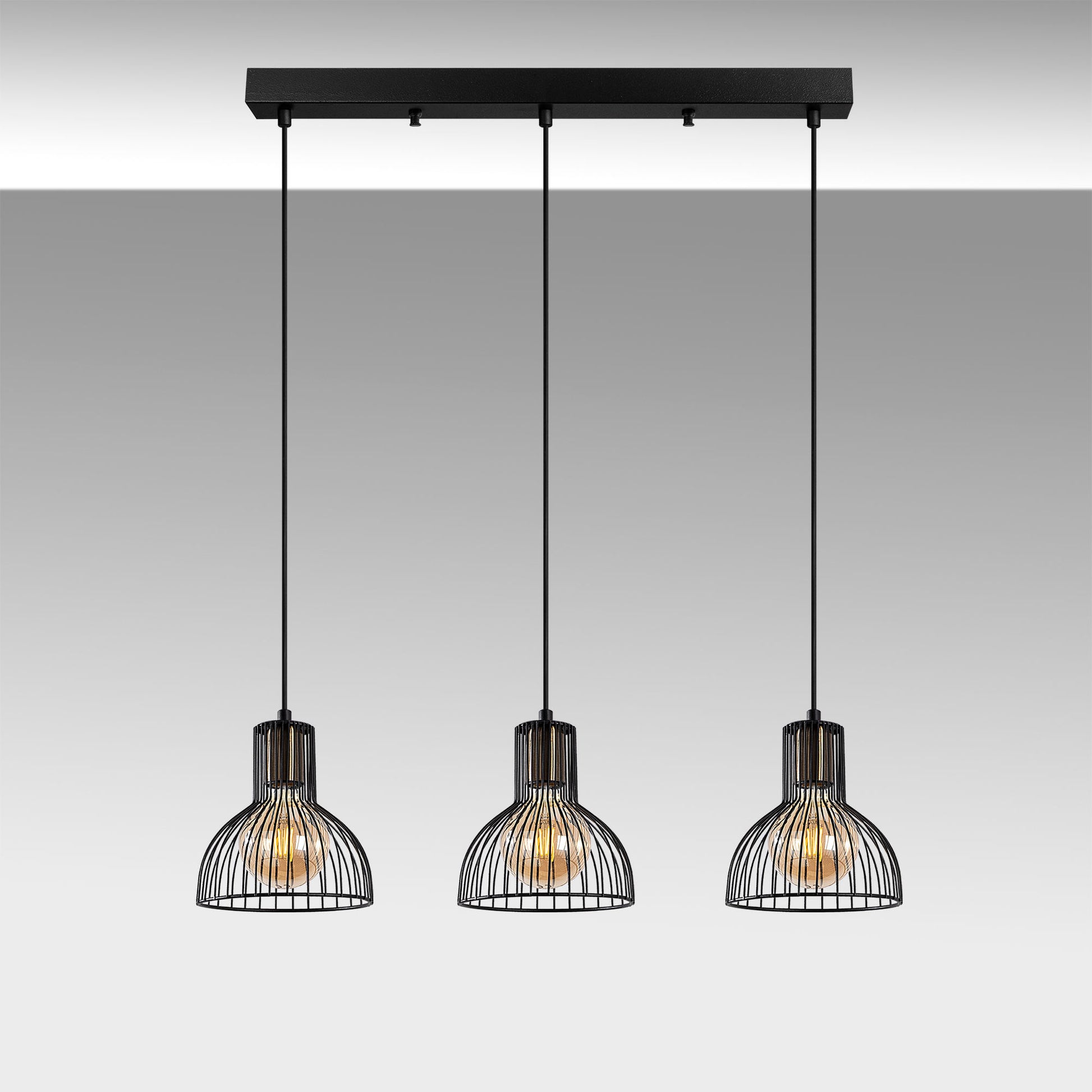 Candeeiro de Teto Industrial, Acabamento Preto e Antigo, 70 x 17 x 114 cm | Corpo em Metal, Altura Ajustável, 3 Soquetes E27 | Perfeito para Decoração Moderna