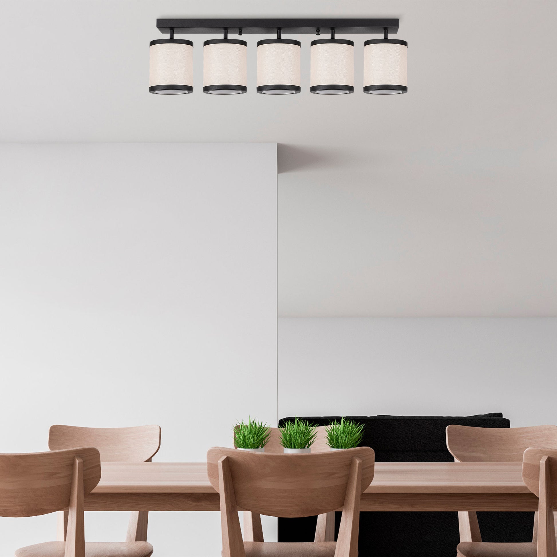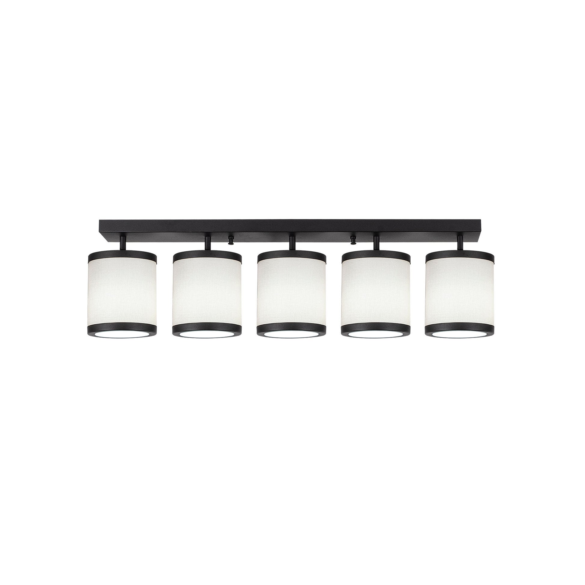 Candeeiro de Teto Escandinavo Moderno, Preto e Branco, 84 x 20 x 21 cm | Corpo em Metal, Tampa em Tecido, 5 Soquetes E27 | Iluminação Elegante para Casa e Escritório