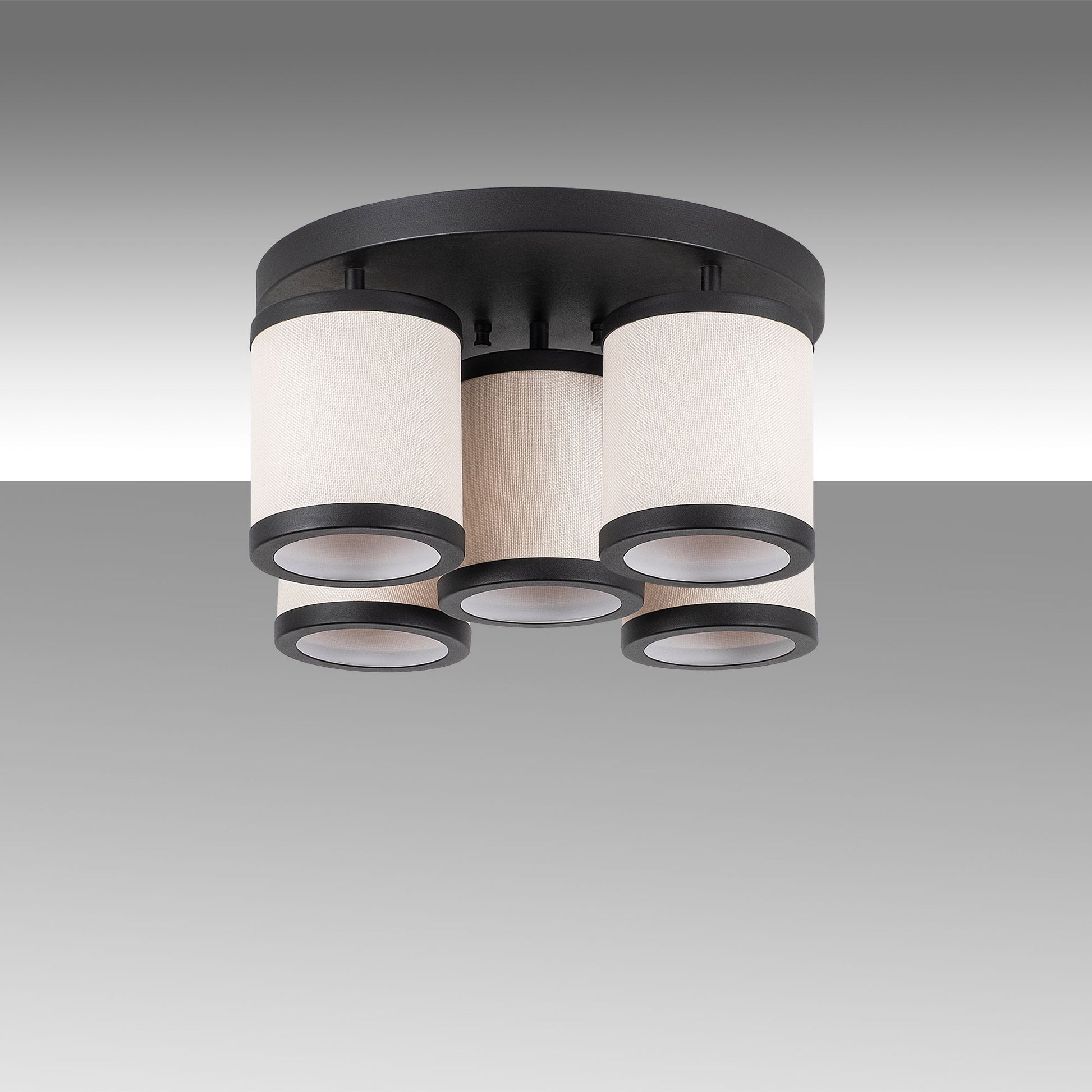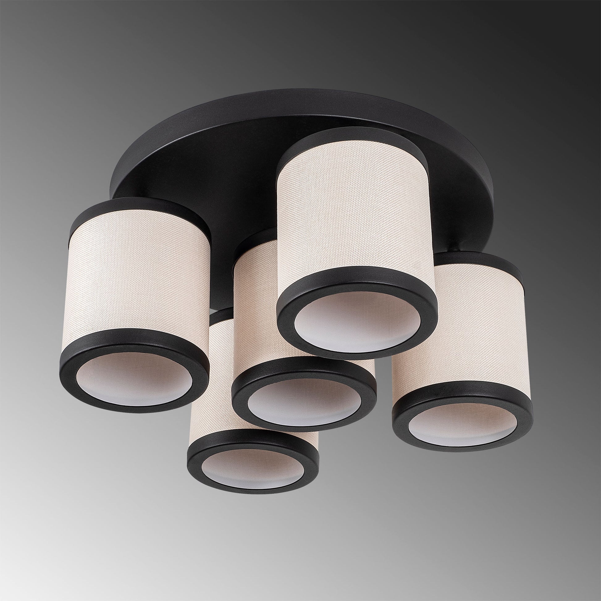 Candeeiro de Teto moderno preto e branco, 50 x 50 x 22 cm, corpo de metal, tampa de tecido, 5 x E27 máx. 40 W, design escandinavo, iluminação elegante para casa