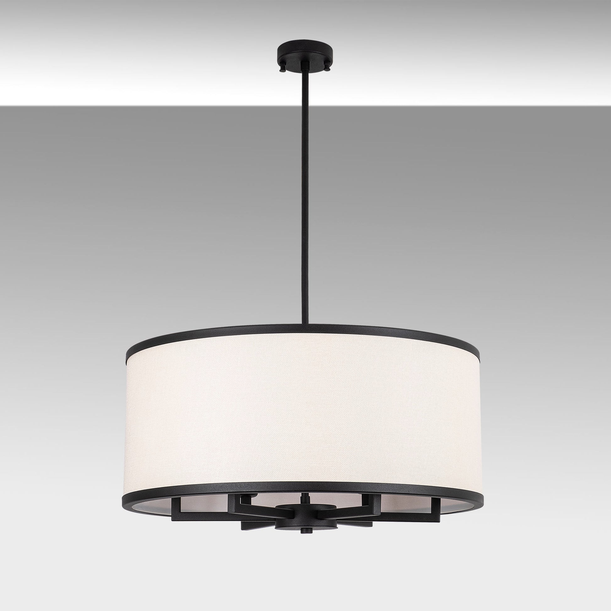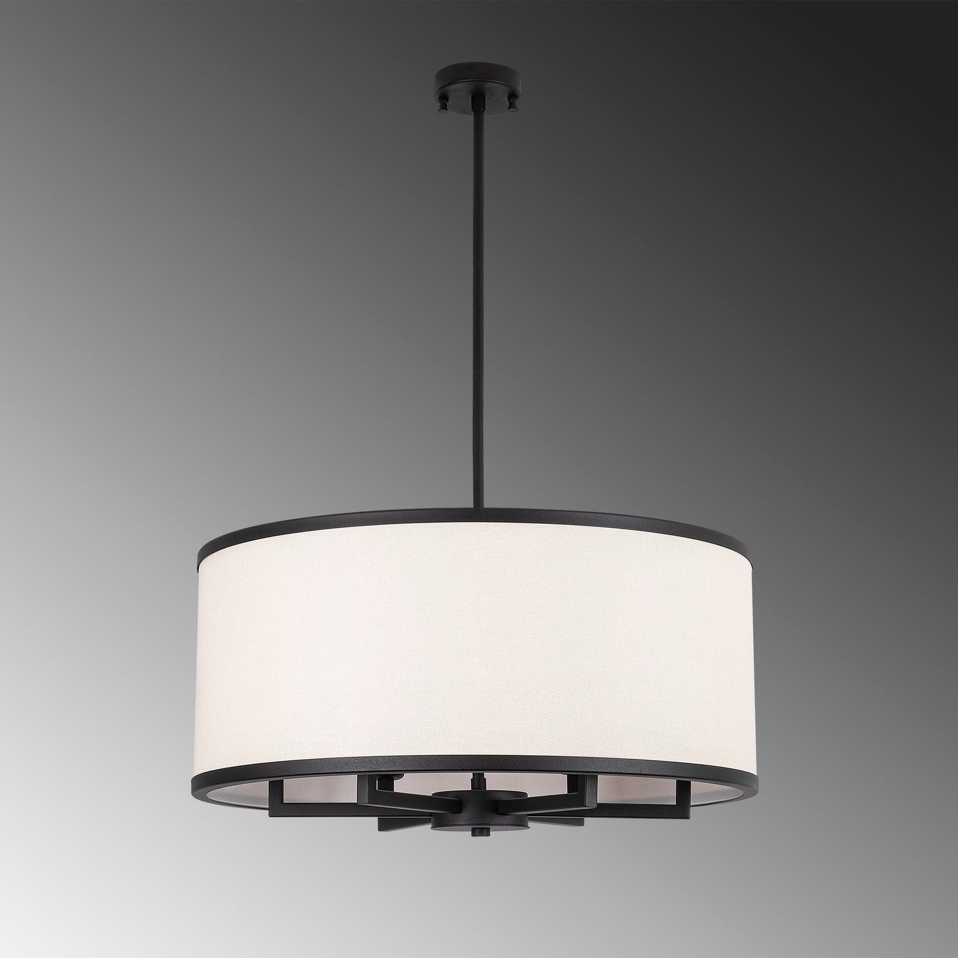 Candeeiro de Teto moderno preto e branco, tampa de tecido de 60 cm, altura ajustável, corpo de metal, 6 x E27 máx. 40 W, design escandinavo elegante para decoração de casa