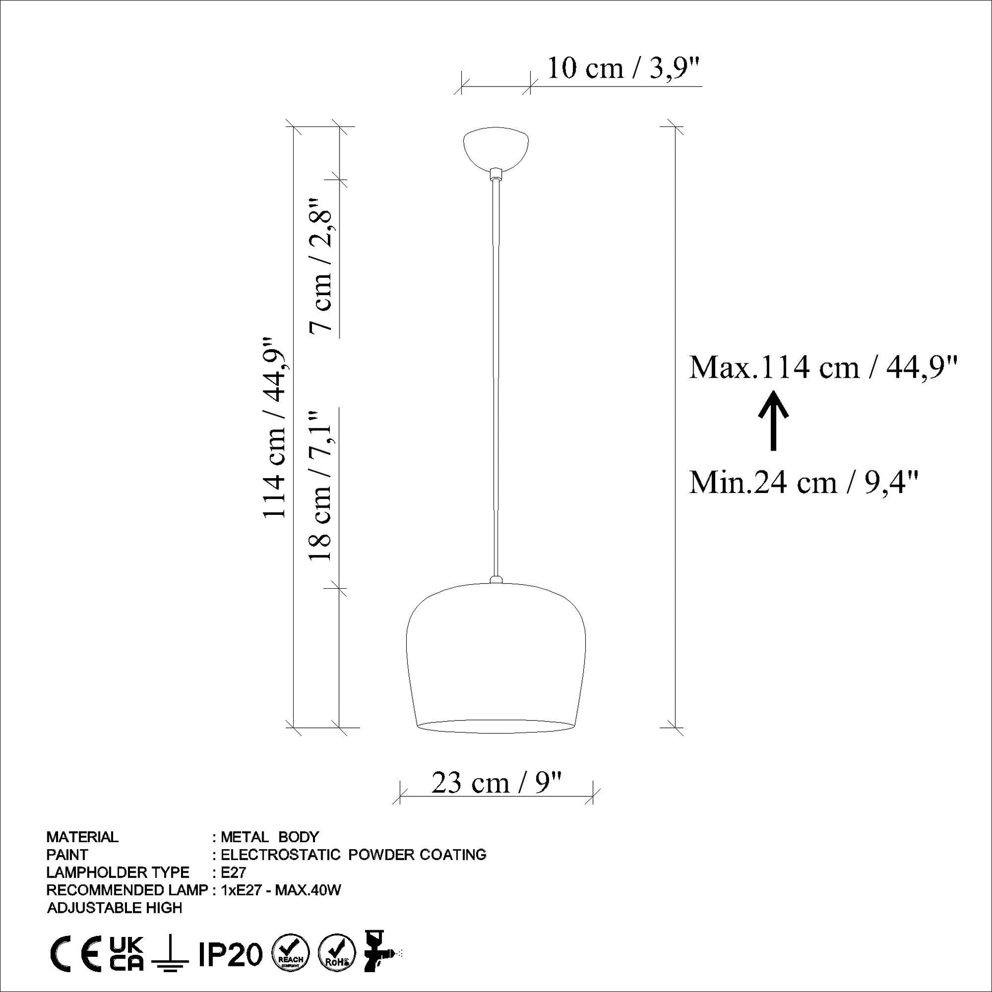 - Tamanho da Cúpula: Ø23 h:18 cm