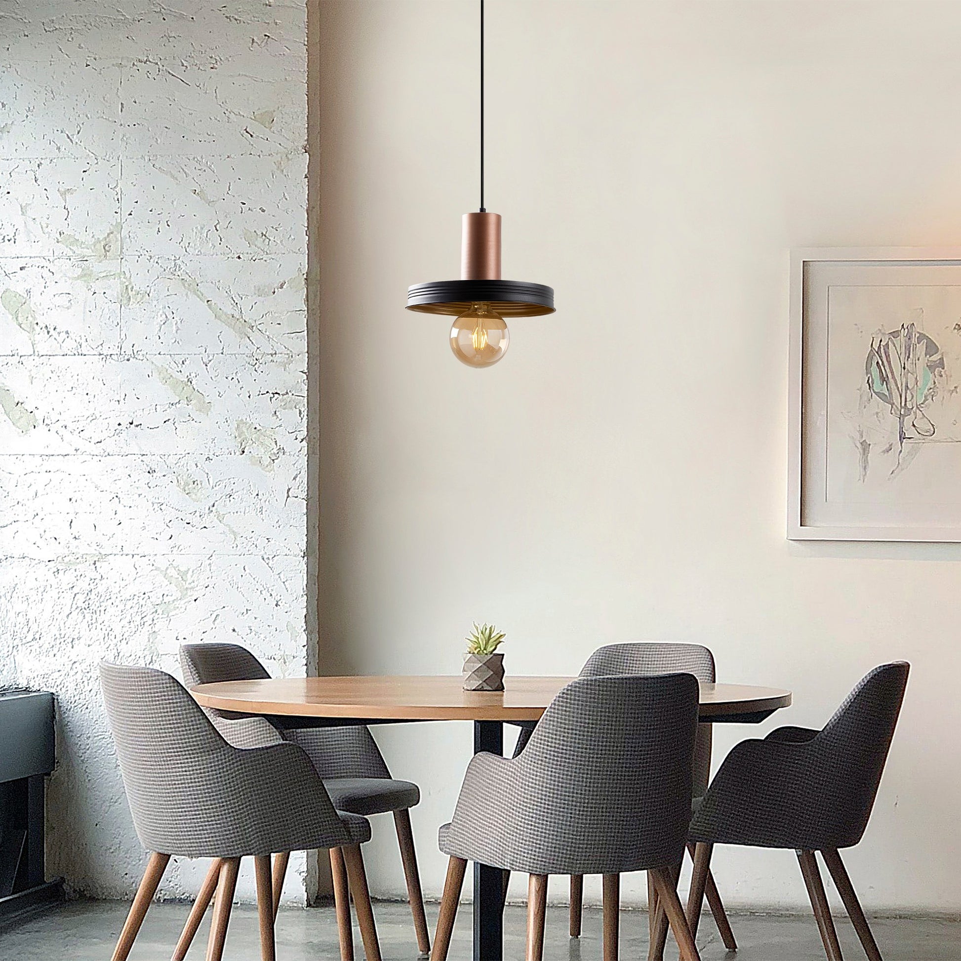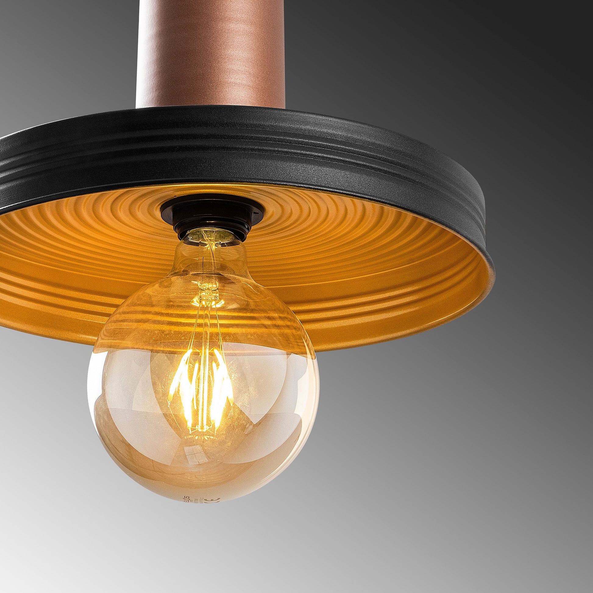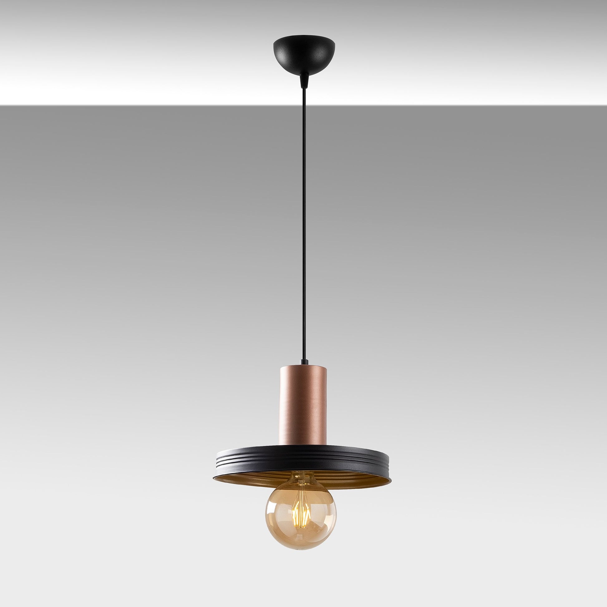A combinação cativante das cores preto e cobre dá um toque único e moderno a este candeeiro. Os tons contrastantes criam um efeito visualmente impressionante, tornando-o numa peça de destaque que irá melhorar sem esforço a estética geral da sua sala.