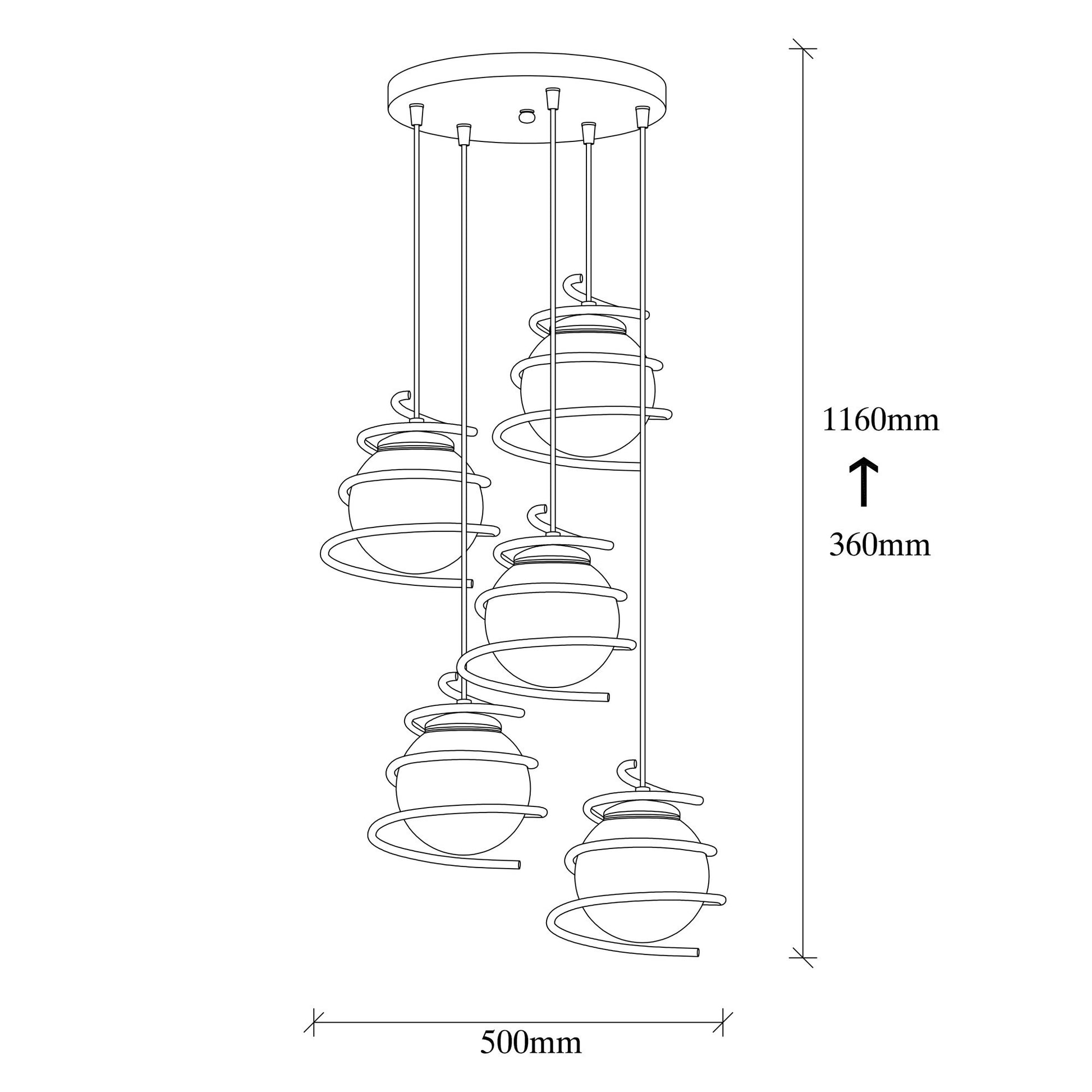 Candeeiro de Teto Industrial, Corpo em Metal Preto, 50 cm de Diâmetro, 116 cm de Altura | Altura Ajustável, 5 Soquetes E27, IP20 | Design Inspirado no Espaço Sideral