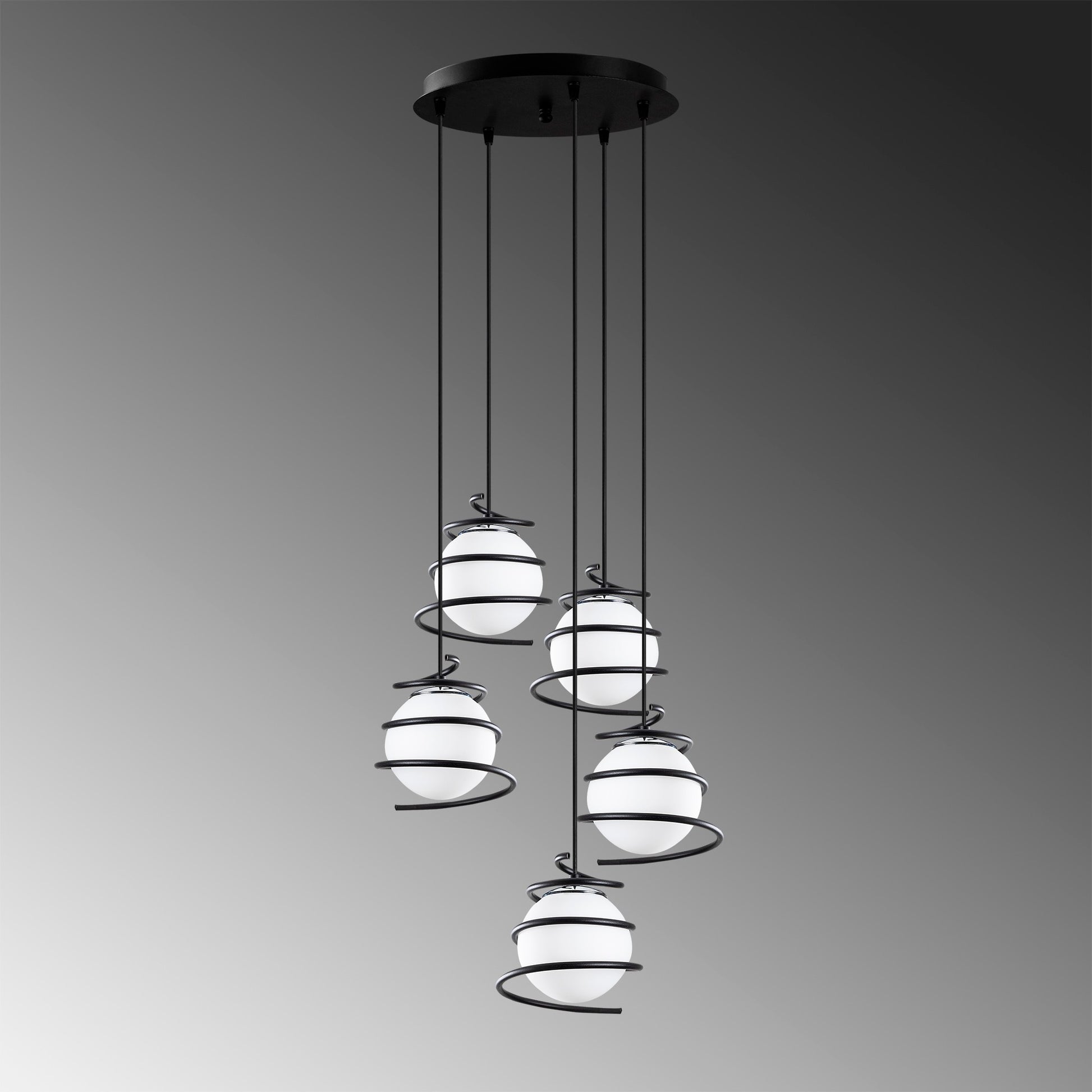 Com cinco casquilhos e27, este candeeiro proporciona uma iluminação ampla para iluminar o seu espaço. Cada casquilho pode acomodar um máximo de 40 watts, garantindo um brilho quente e convidativo que transformará a sua sala num refúgio de tranquilidade. A cor preta do candeeiro dá um toque de sofisticação e combina na perfeição com qualquer decoração interior.