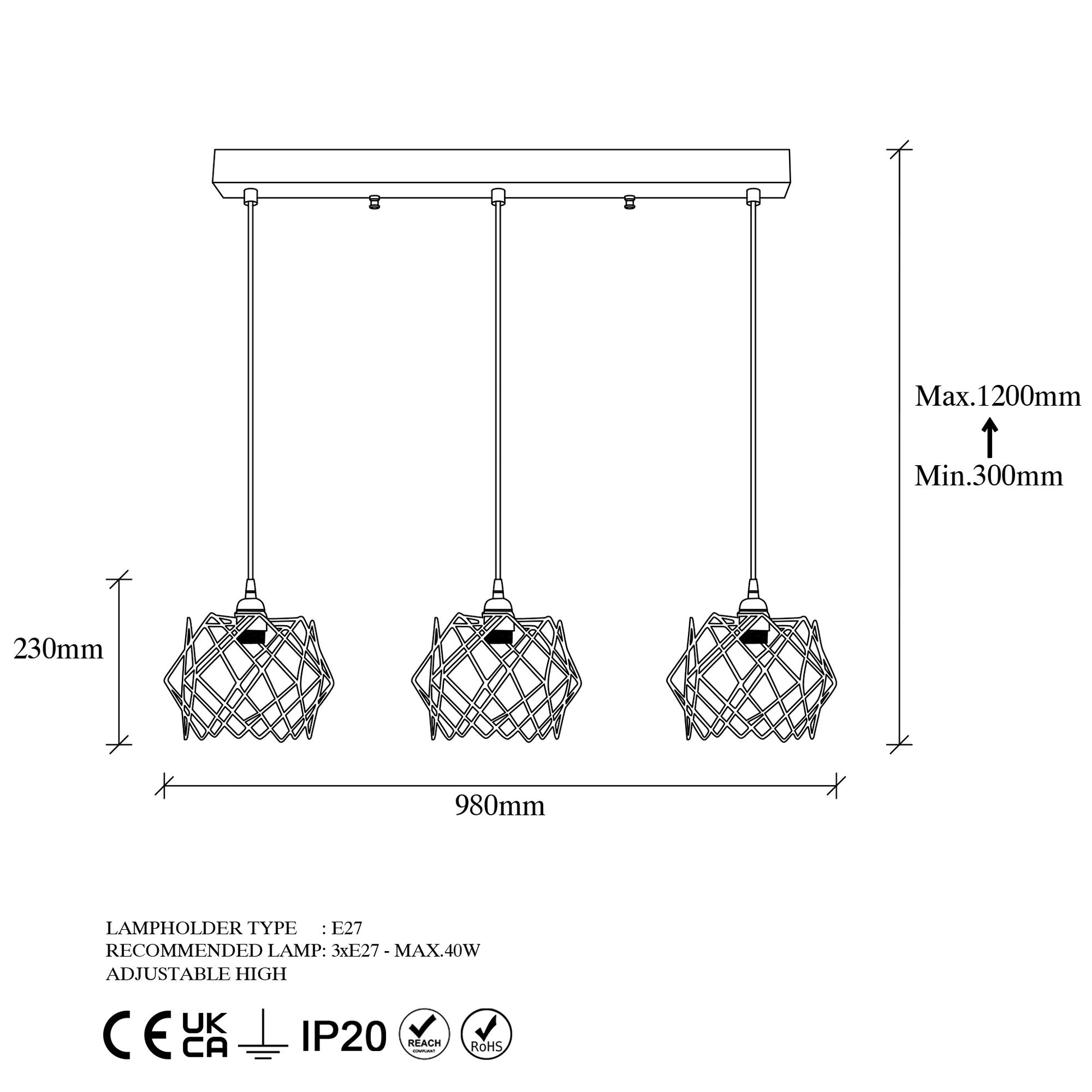 - Tipo de tomada: 3 x E 27 Max 40 W